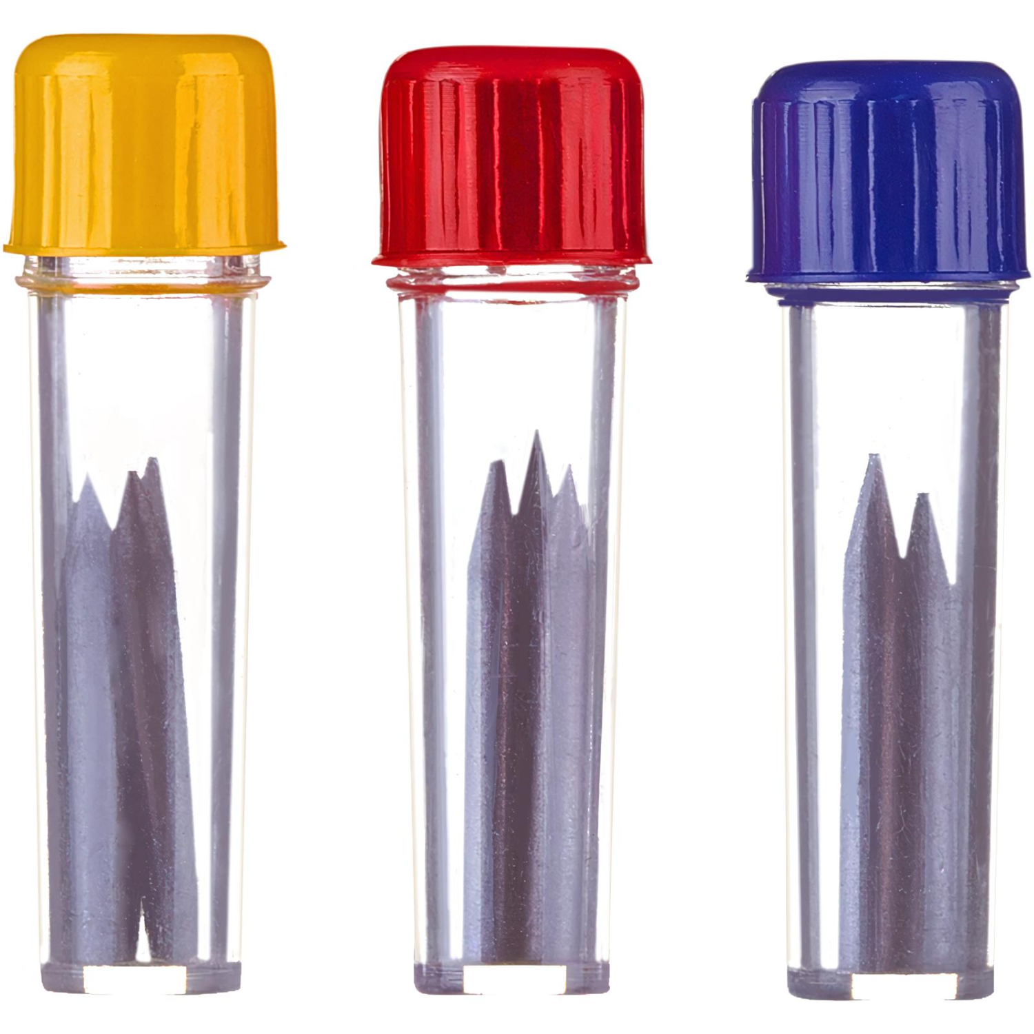 Запасные грифели для циркулей 9 шт. (в пенале 3 шт.). Длина грифеля 17 мм, конусовидная заточка. Подходит для всех циркулей с грифелями диаметром 2 мм.