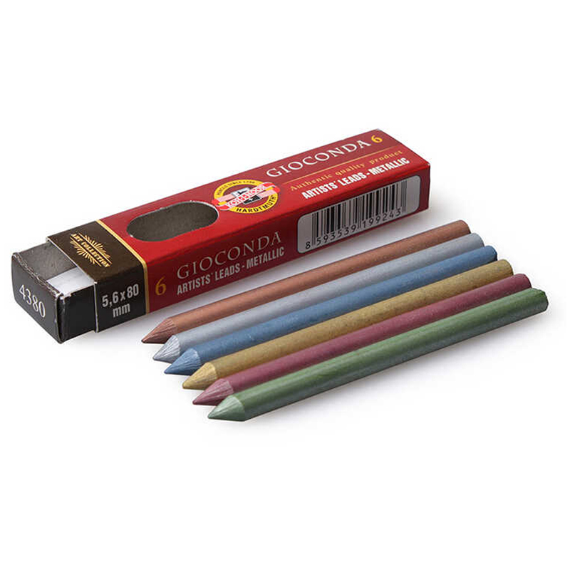 Грифели цветные для цанговых карандашей Koh-I-Noor "Gioconda", 5,6мм, металлик ассорти, 6шт., пластик коробвый