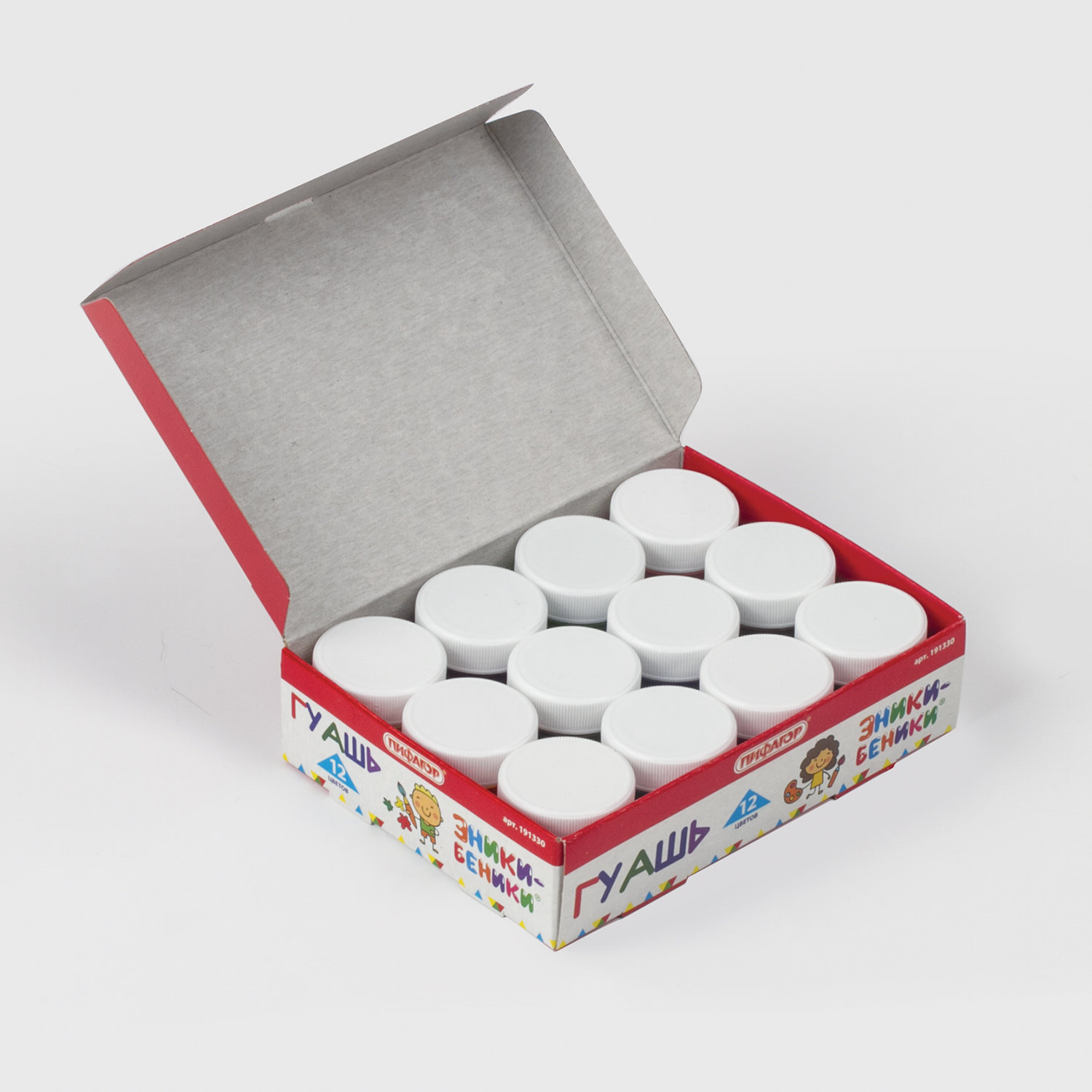 Гуашь ПИФАГОР "ЭНИКИ-БЕНИКИ", 12 цветов по 10 мл, 191330