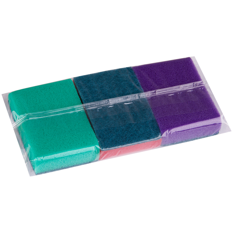 Поролоновые губки с абразивным слоем применяются для мытья посуды, раковин, ванны, газовых и эл. плит, кафеля, в холодной и горячей воде, с моющими средствами, при разной степени загрязнённости. Мягкий слой предназначен для очистки деликатных поверхностей, в том числе тефлона, керамики. Жесткий слой – для удаления сильных загрязнений.