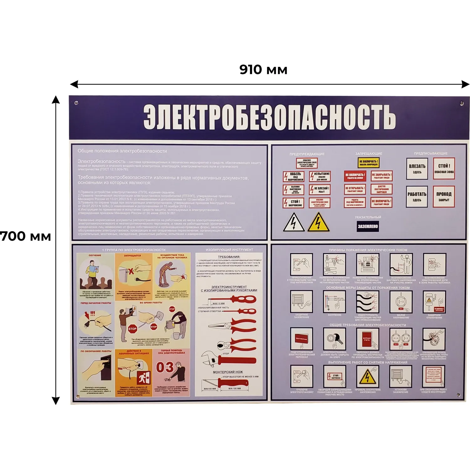 О товаре «Информационный стенд-плакат Электробезопасность (910х700 мм)»