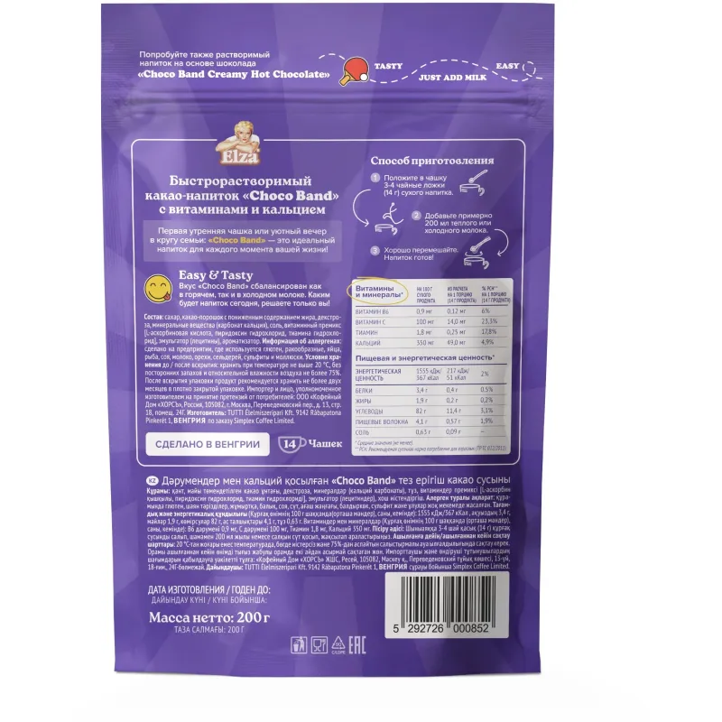 О товаре «Какао Choco Bandс ELZA витаминами и кальцием растворимый 200г»