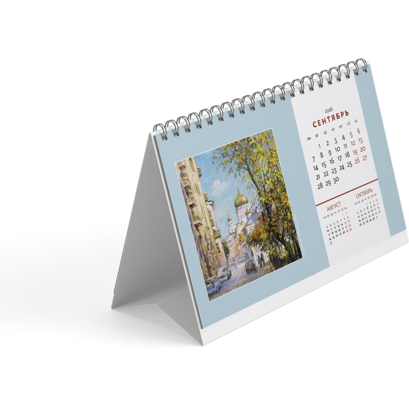 Настольный календарь на 2026 год. Формат 200×115 мм, 12 листов + 2 обложки, мелованная бумага, разрезная сетка, курсор, пружина, подложка: мелованный картон, место для рекламы 200×25 мм. Календарь с репродукциями картин Ведерникова В.А., преподавателя академии живописи Андрияки.