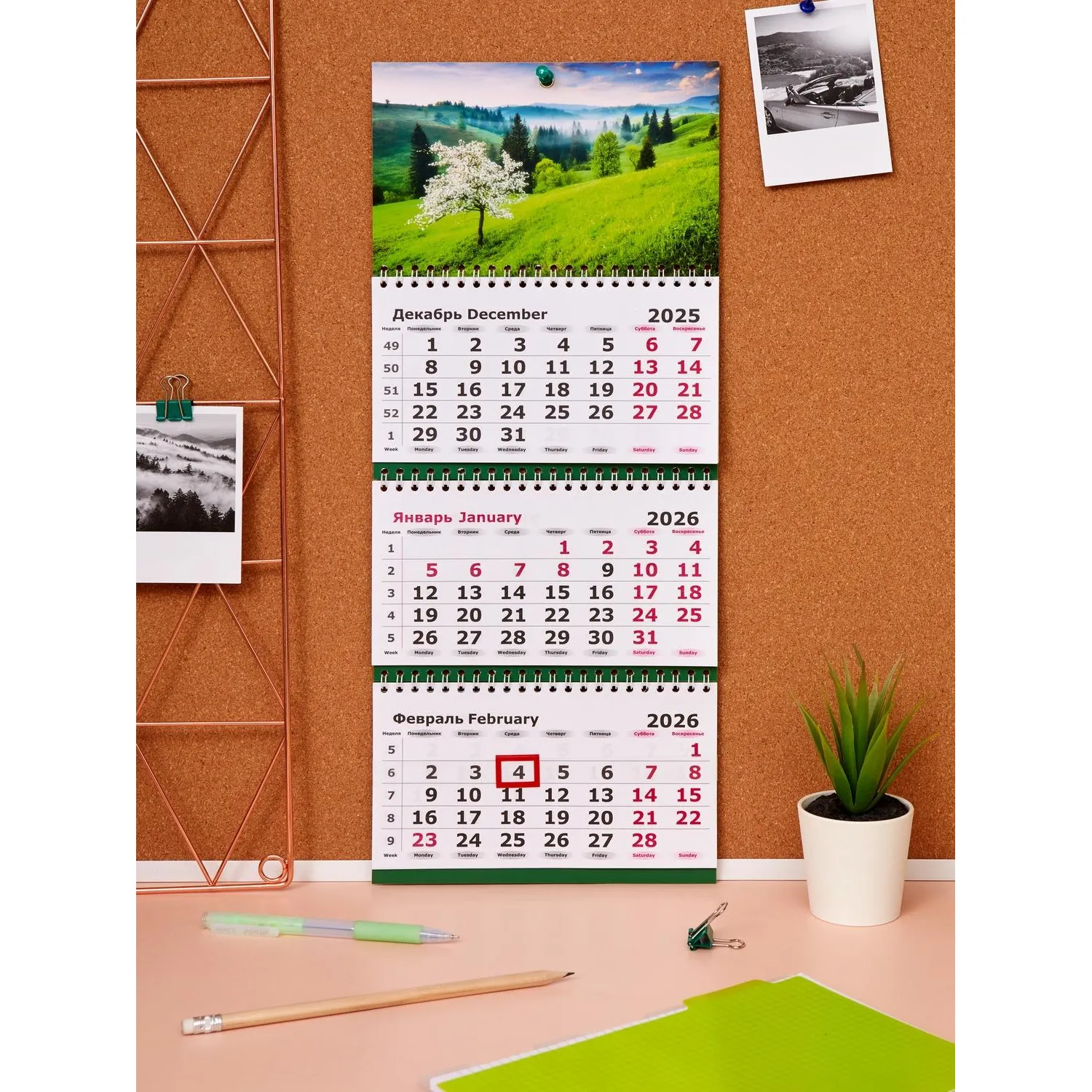Календарь настенный 3-х блочный 2026 природа 19×46.5 см