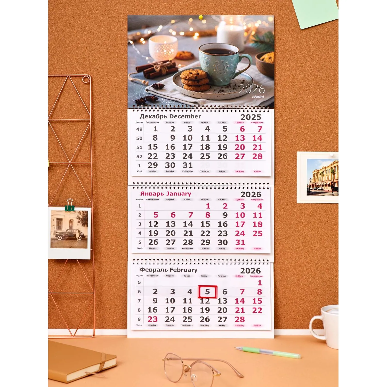 Календарь настенный 3-х блочный 2026 Attache, 305х675, Печенье, 80г