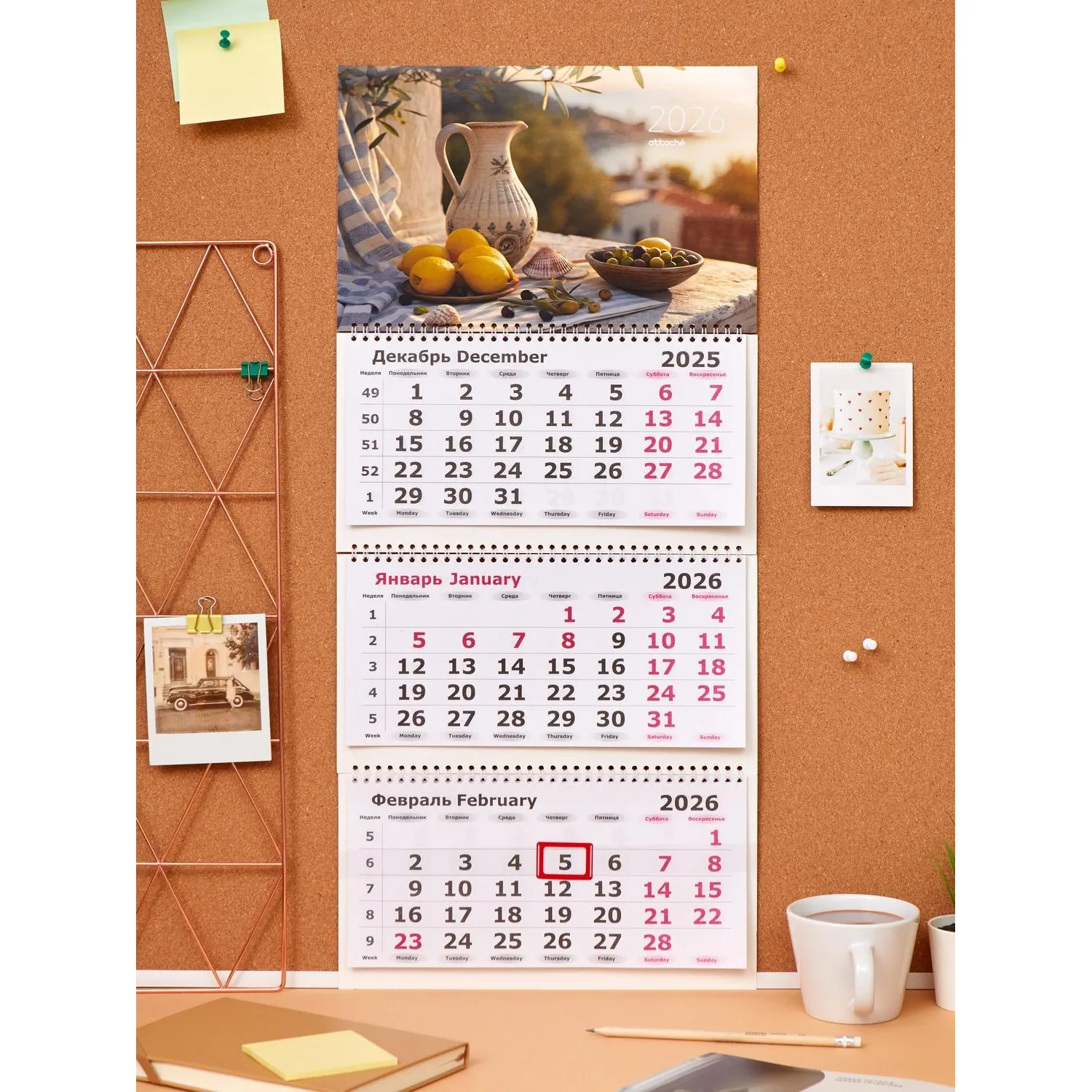 О товаре «Календарь настенный 3-х блочный 2026 Завтрак 30.5x67.5 см»