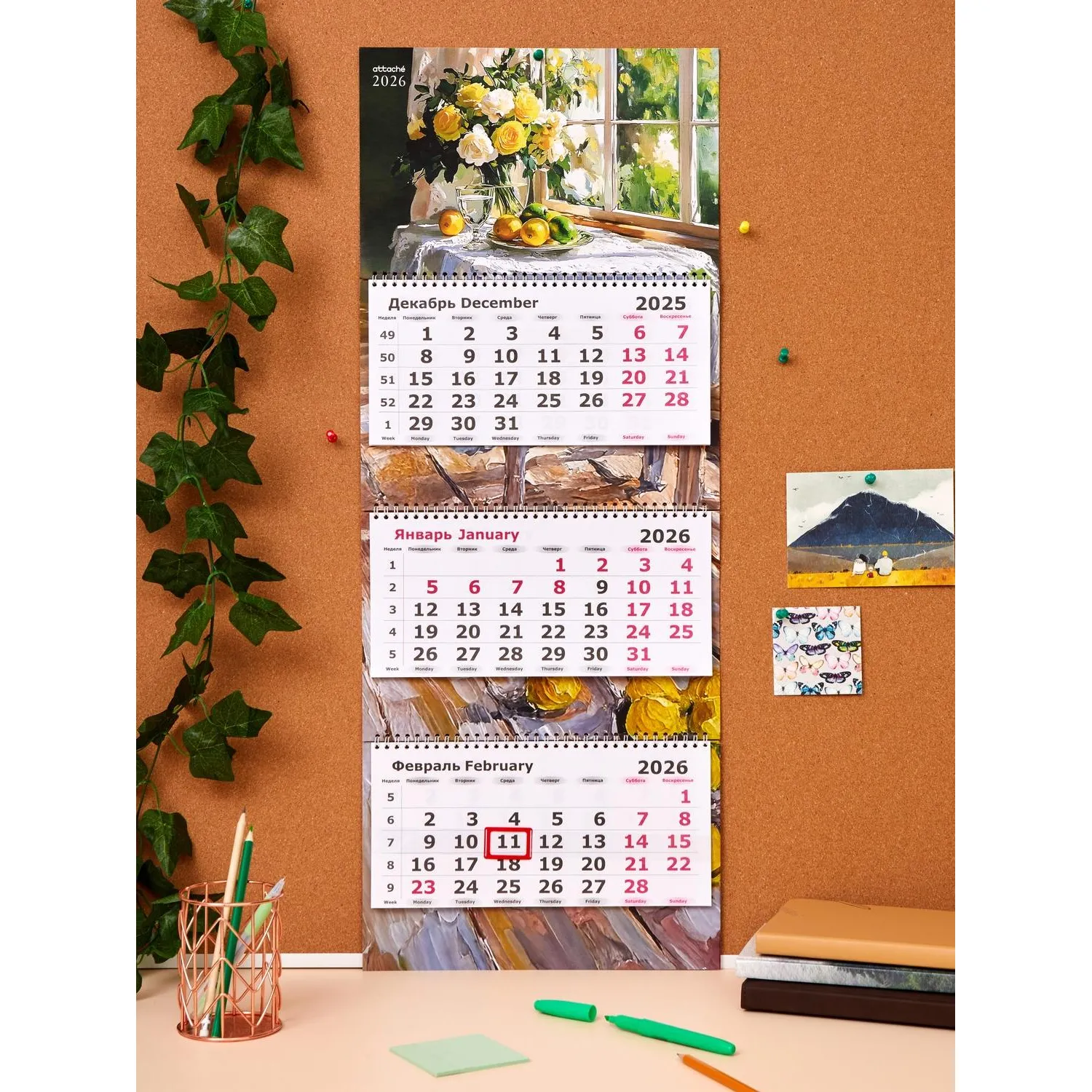 О товаре «Календарь настенный 3-х блочный 2026 Букет 30.5x78 см»