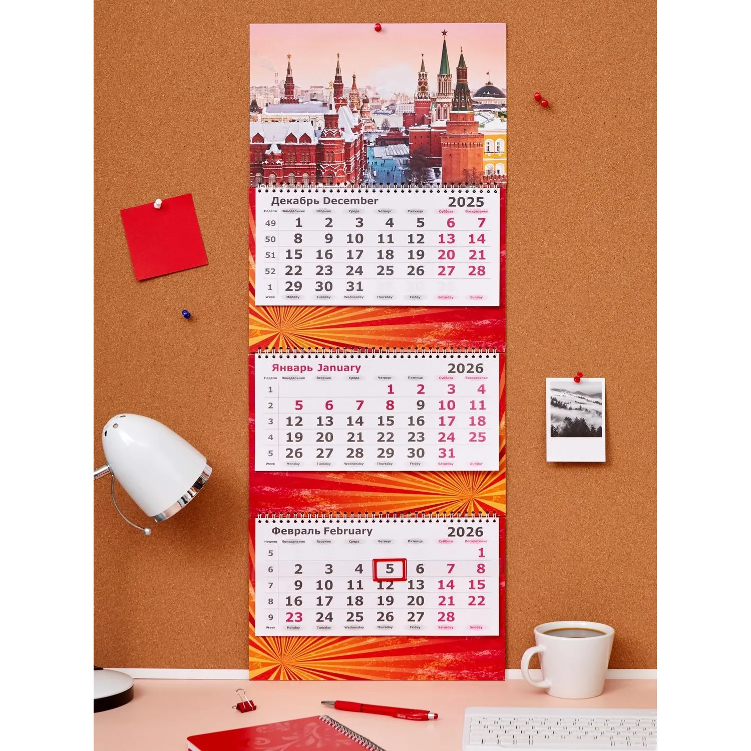 Календарь настенный 3-х блочный 2026 Москва 30.5×78 см