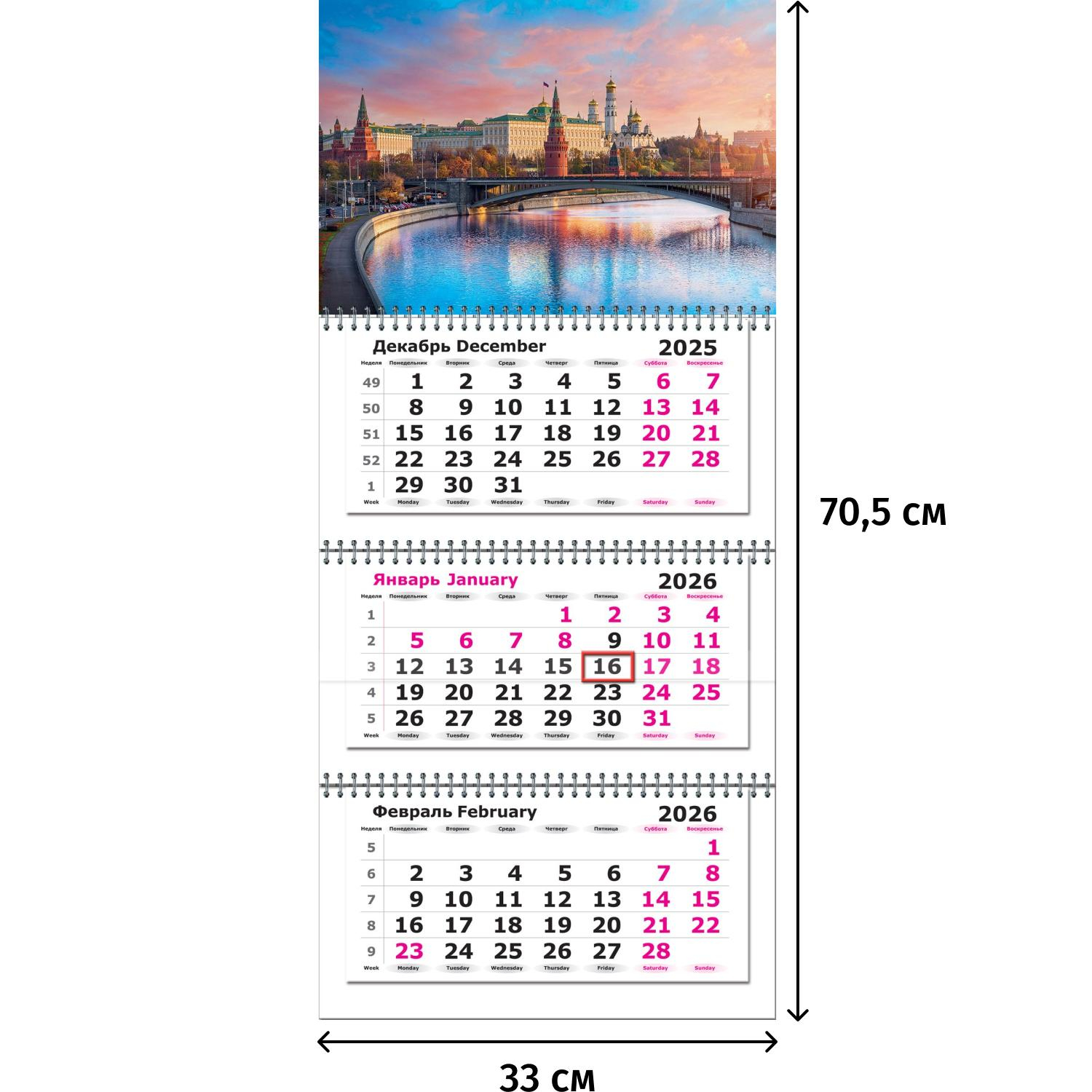 Календарь настенный 3-х блочный 2026 Attache Премиум, Москва, 330х705, 80г