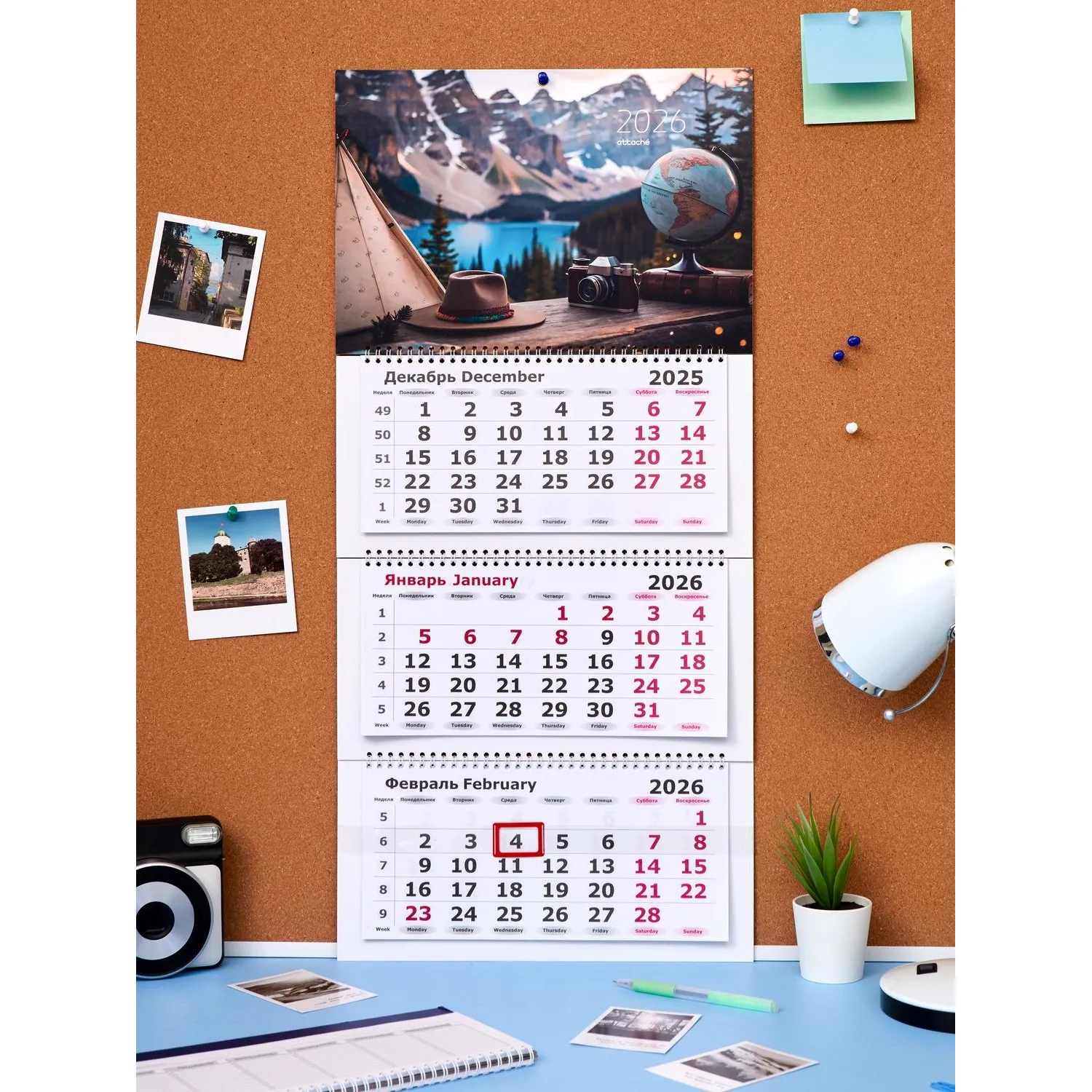 Календарь настенный 3-х блочный 2026 Путешествия 33×70.5 см