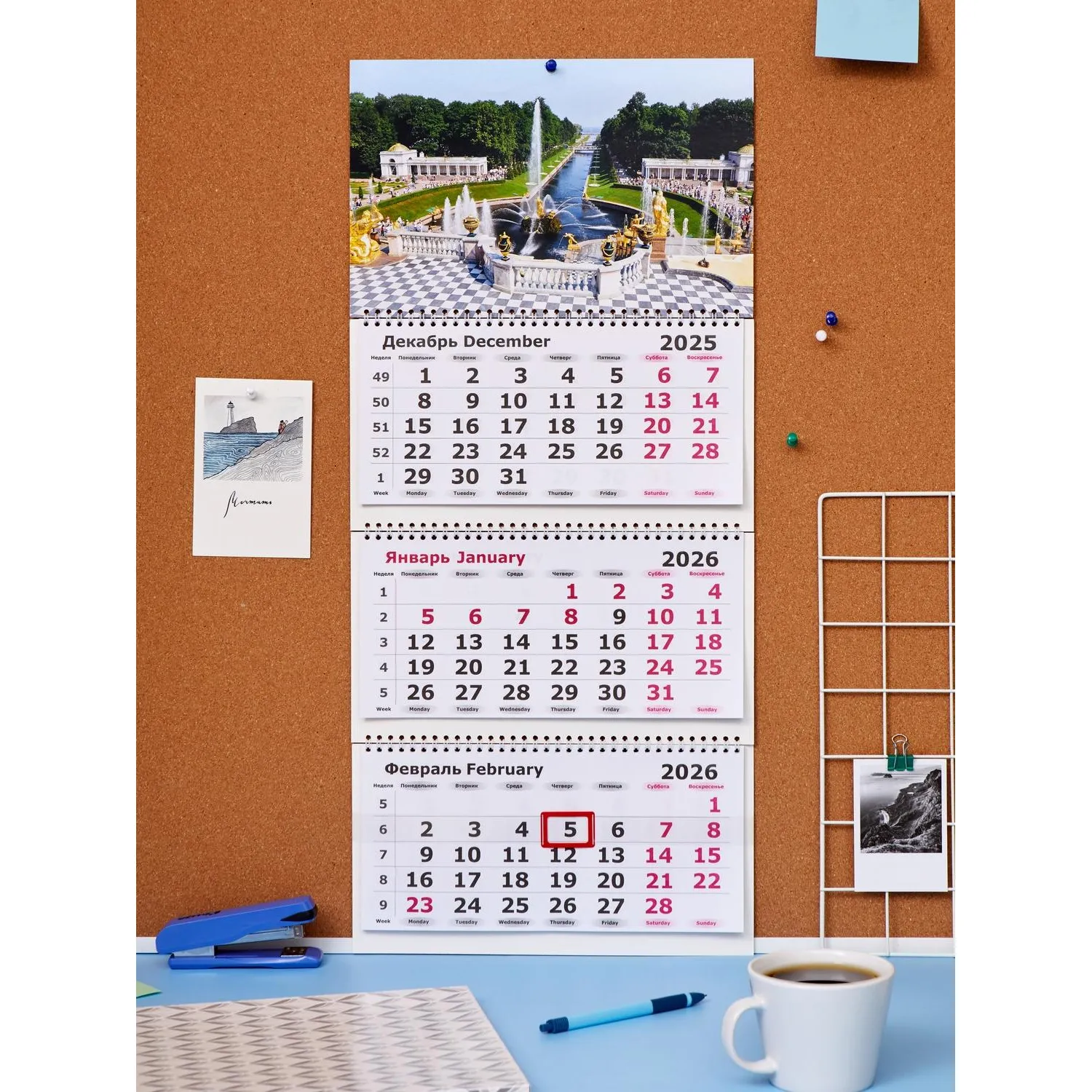 Календарь настенный 3-х блочный 2026 Парки 30.5x67.5 см