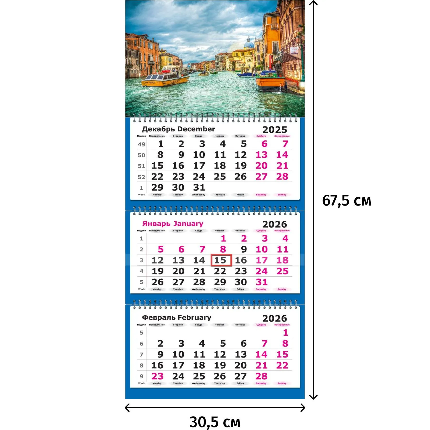 Календарь настенный 3-х блочный 2026 Венеция 30.5×67.5 см