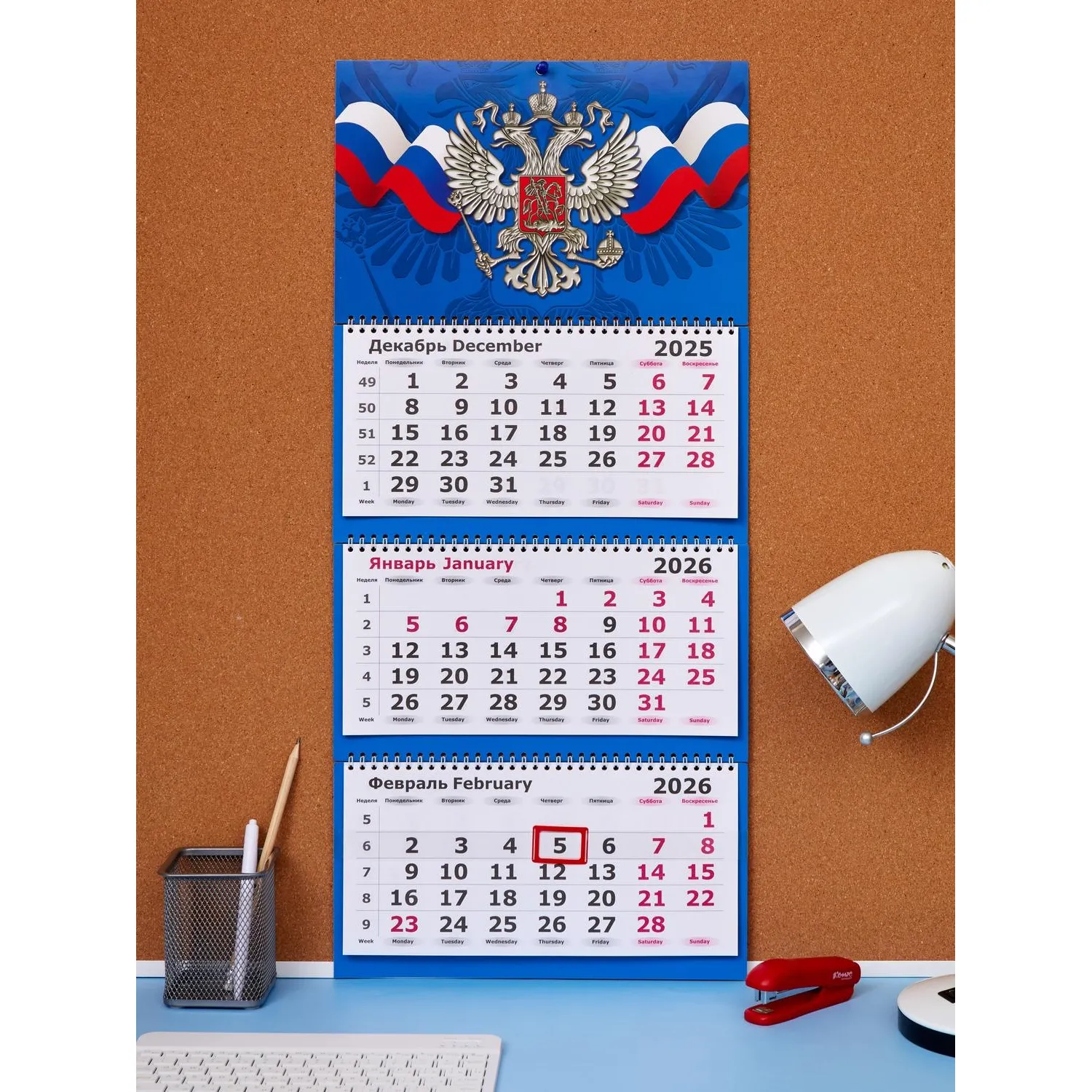 Календарь настенный 3-х блочный 2026 Госсимволика 30.5x67.5 см