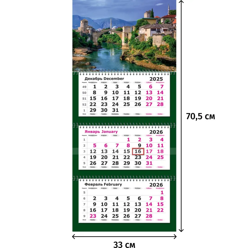 Календарь настенный 3-х блочный 2026 Крепость 33×70.5 см