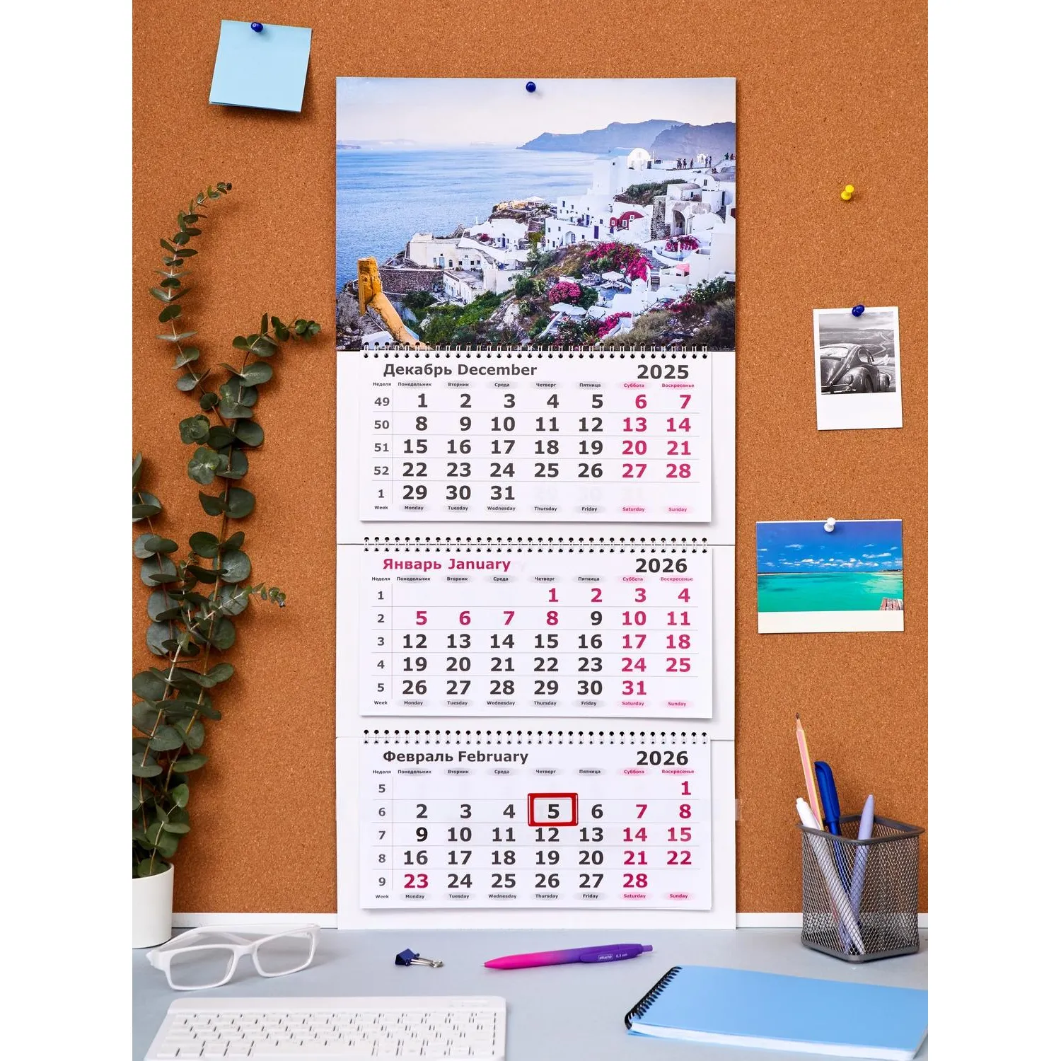 Календарь настенный 3-х блочный 2026 отдых 33×70.5 см
