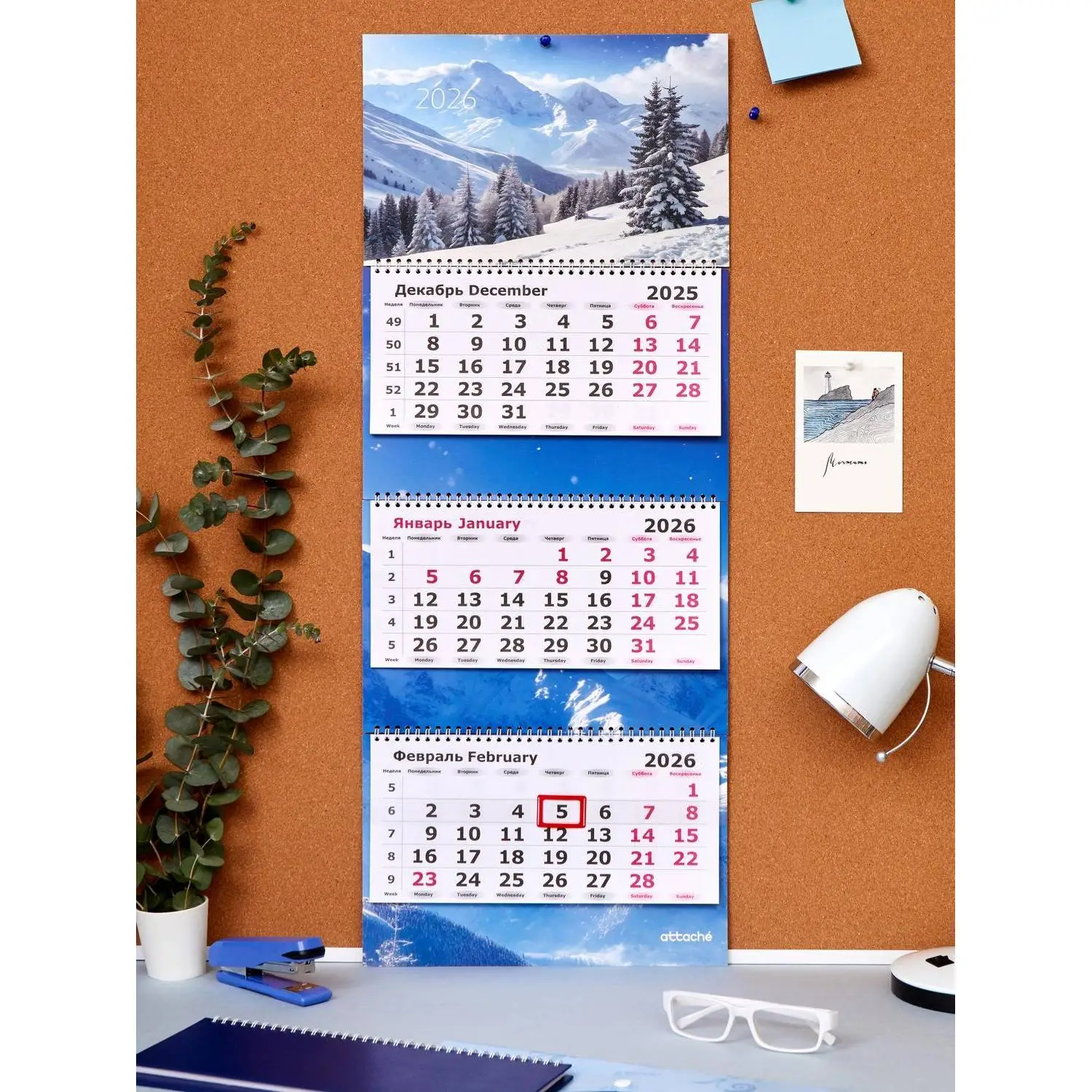 О товаре «Календарь настенный 3-х блочный 2026 природа 30.5x78 см»