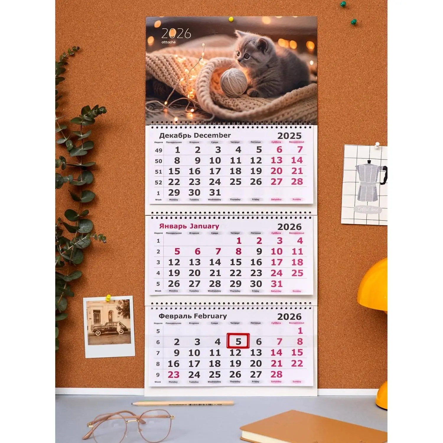 Календарь настенный 3-х блочный 2026 Рыжий Джентльмен 30.5×67.5 см