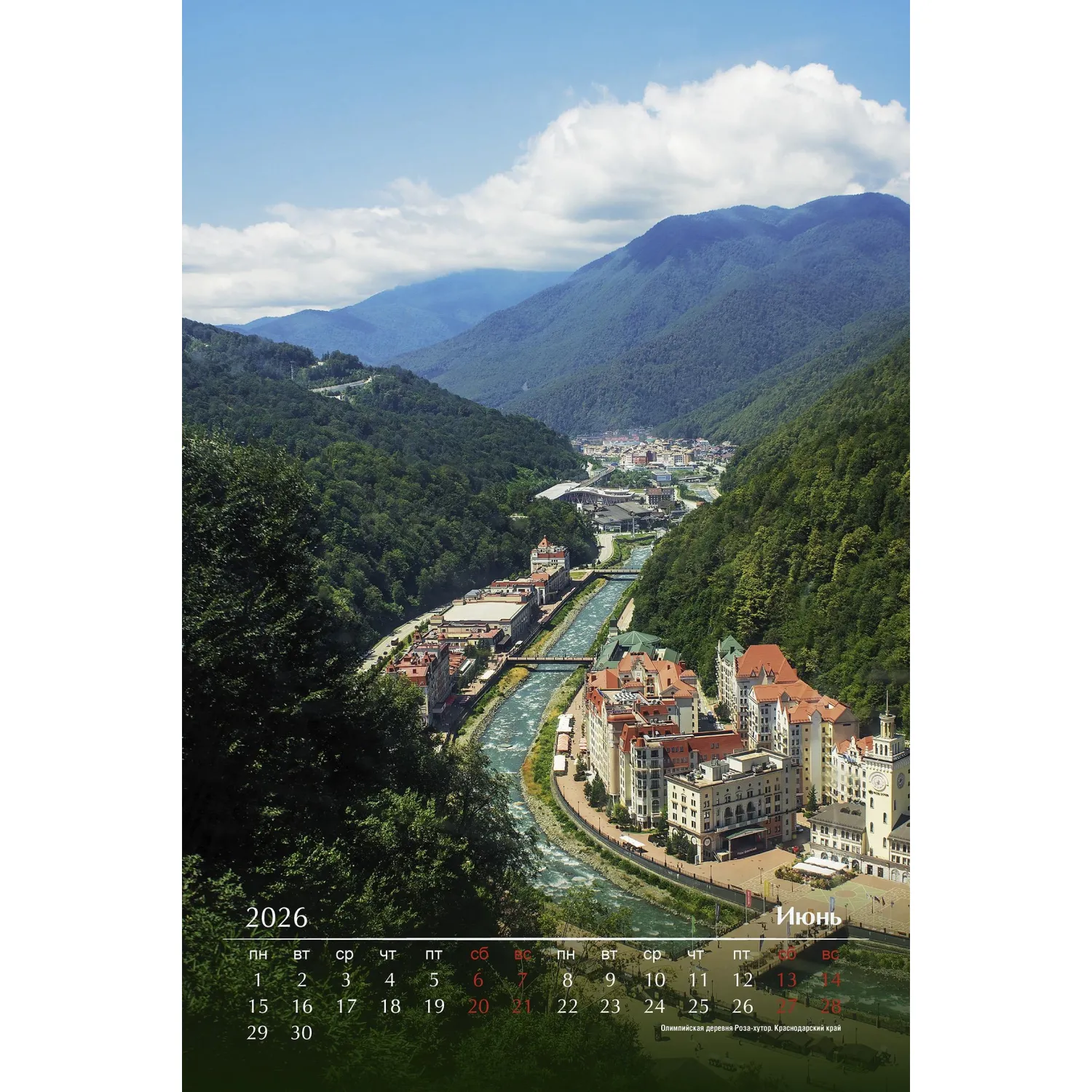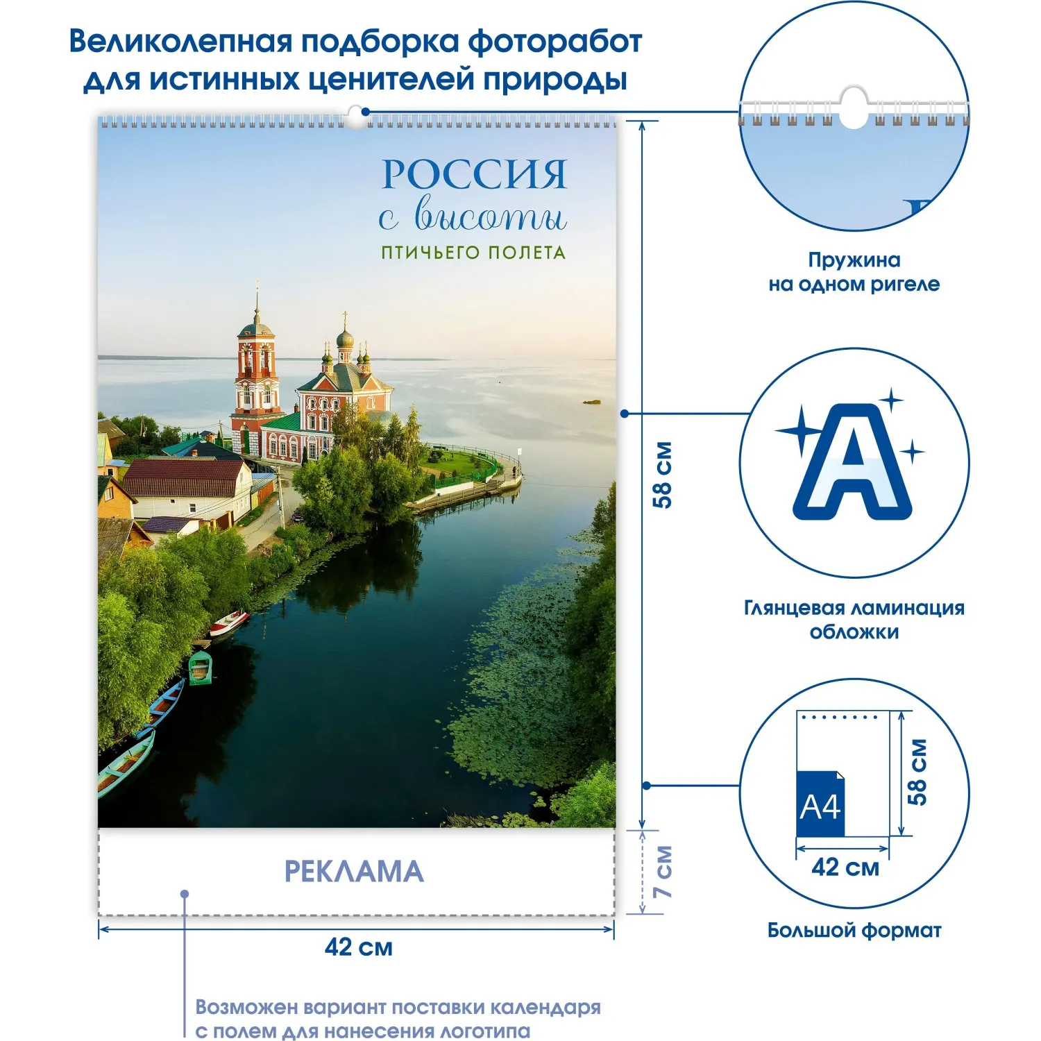 Календарь настенный моноблочный 2026 год Россия с высоты птичьего полета 42×58 см