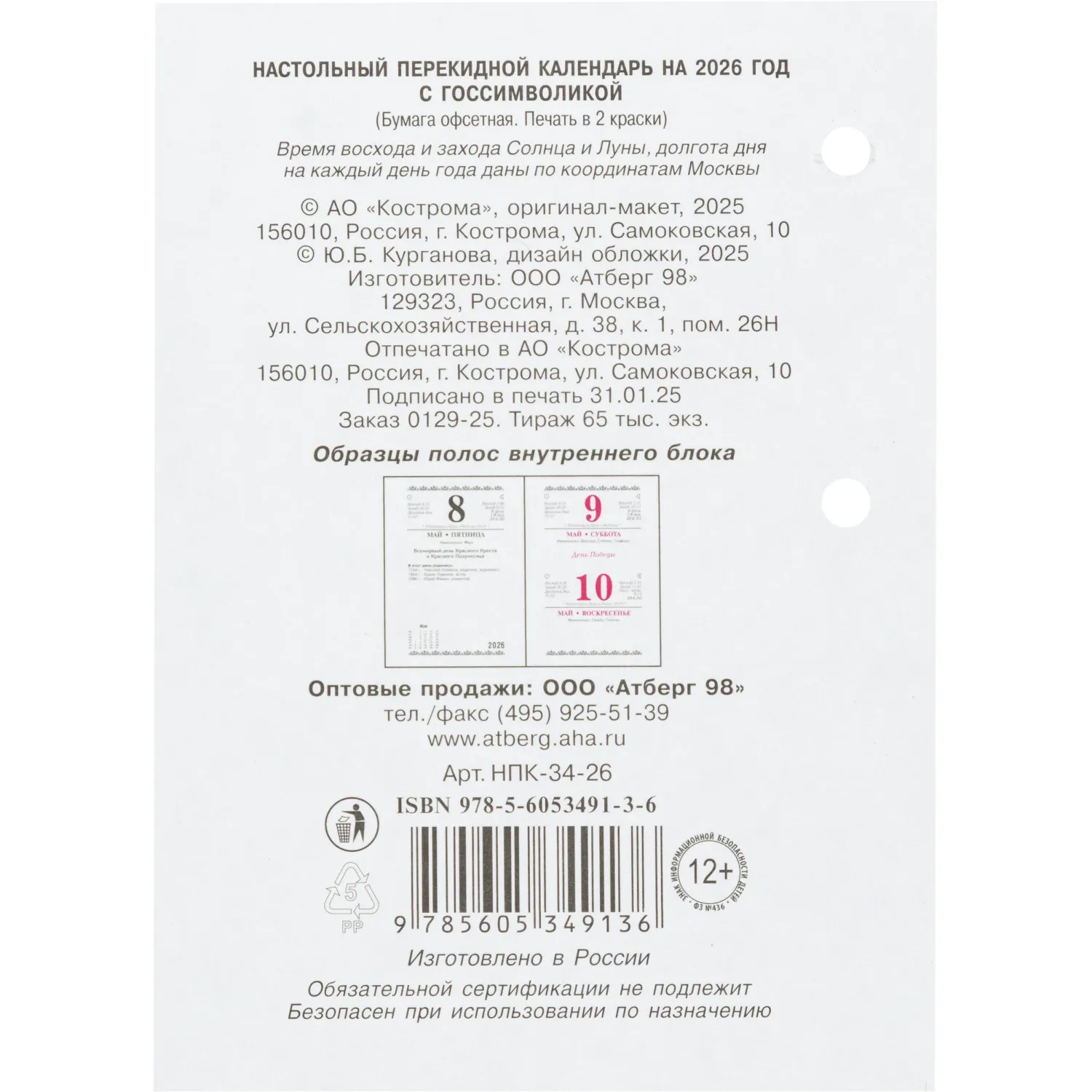 О товаре «Календарь настольный перекидной 2026 Госсимволика 10x14 см (НПК-34-26)»