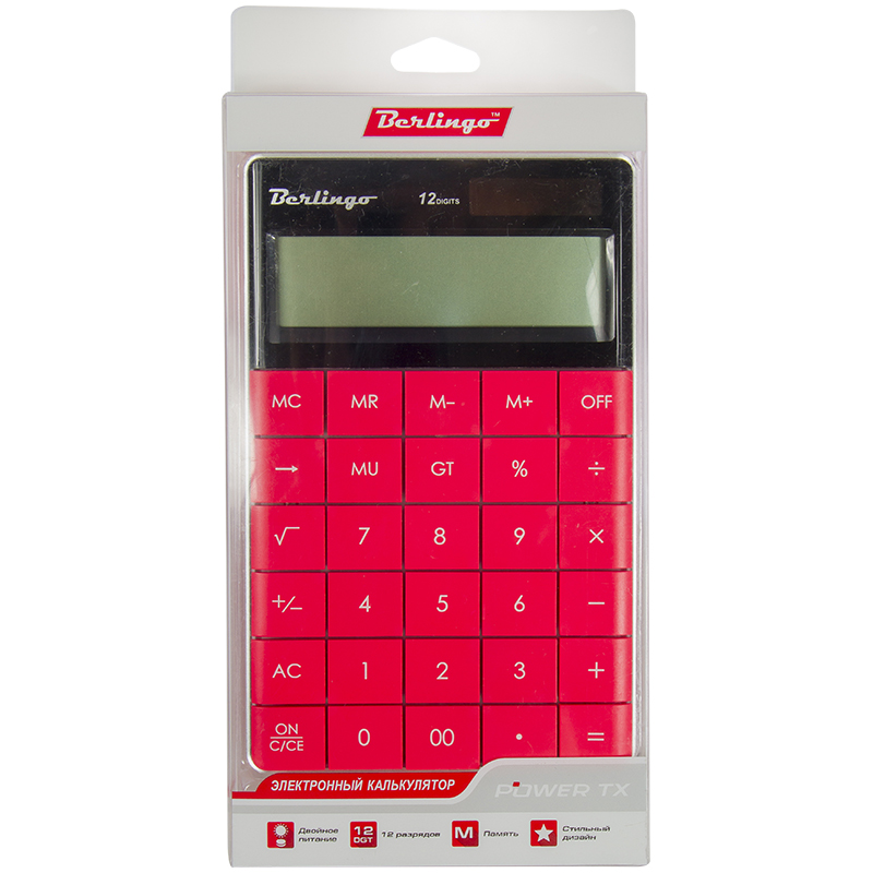 О товаре «Калькулятор настольный Berlingo "Power TX", 12 разр., двойное питание, 165*105*13мм, темно-розовый»