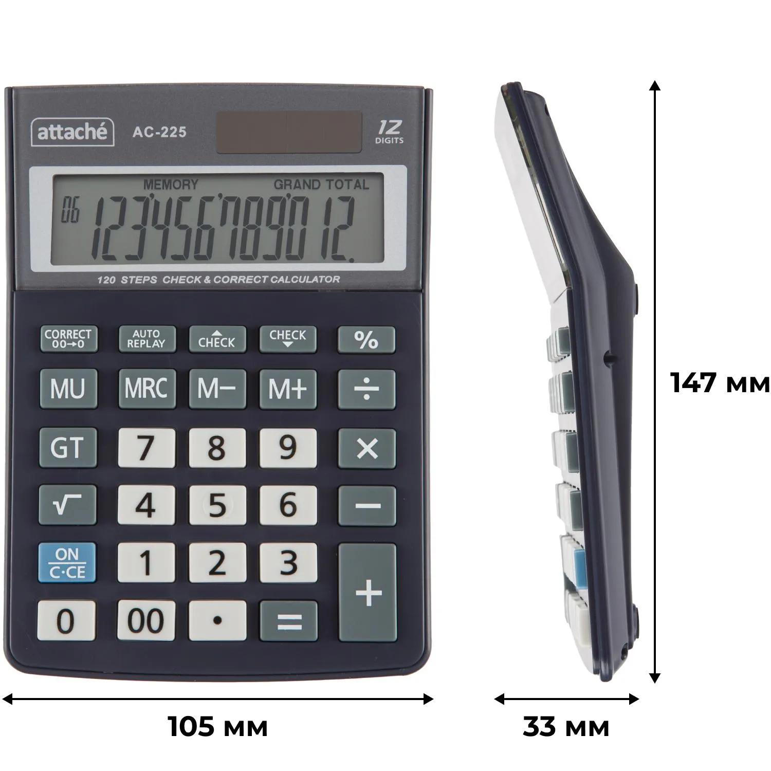 О товаре «Калькулятор настольный Attache AС-225 12-разрядный серый 147x105x33 мм»