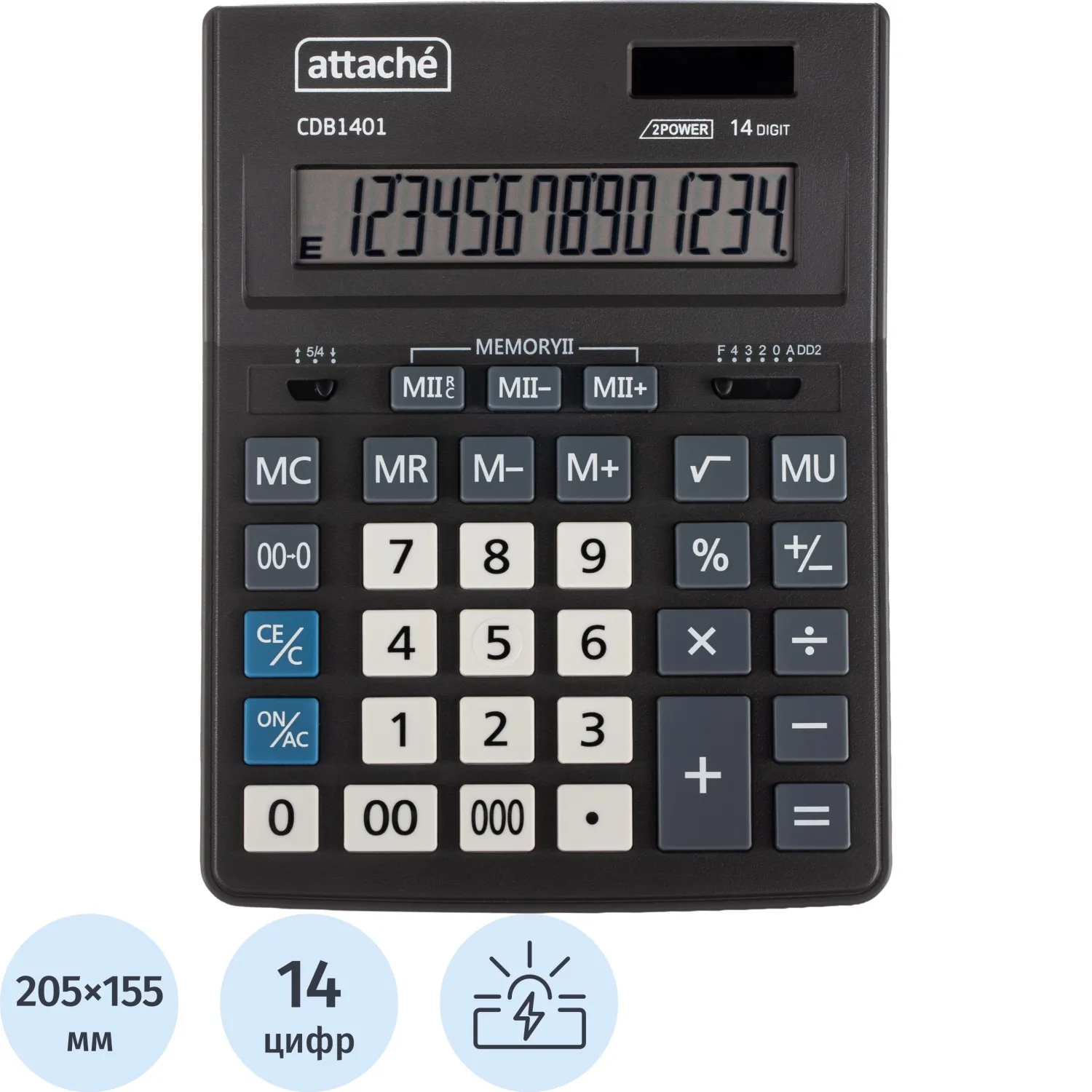 О товаре «Калькулятор настольный Attache CDB1401-BK 14-разрядный черный 205x155x35 мм»