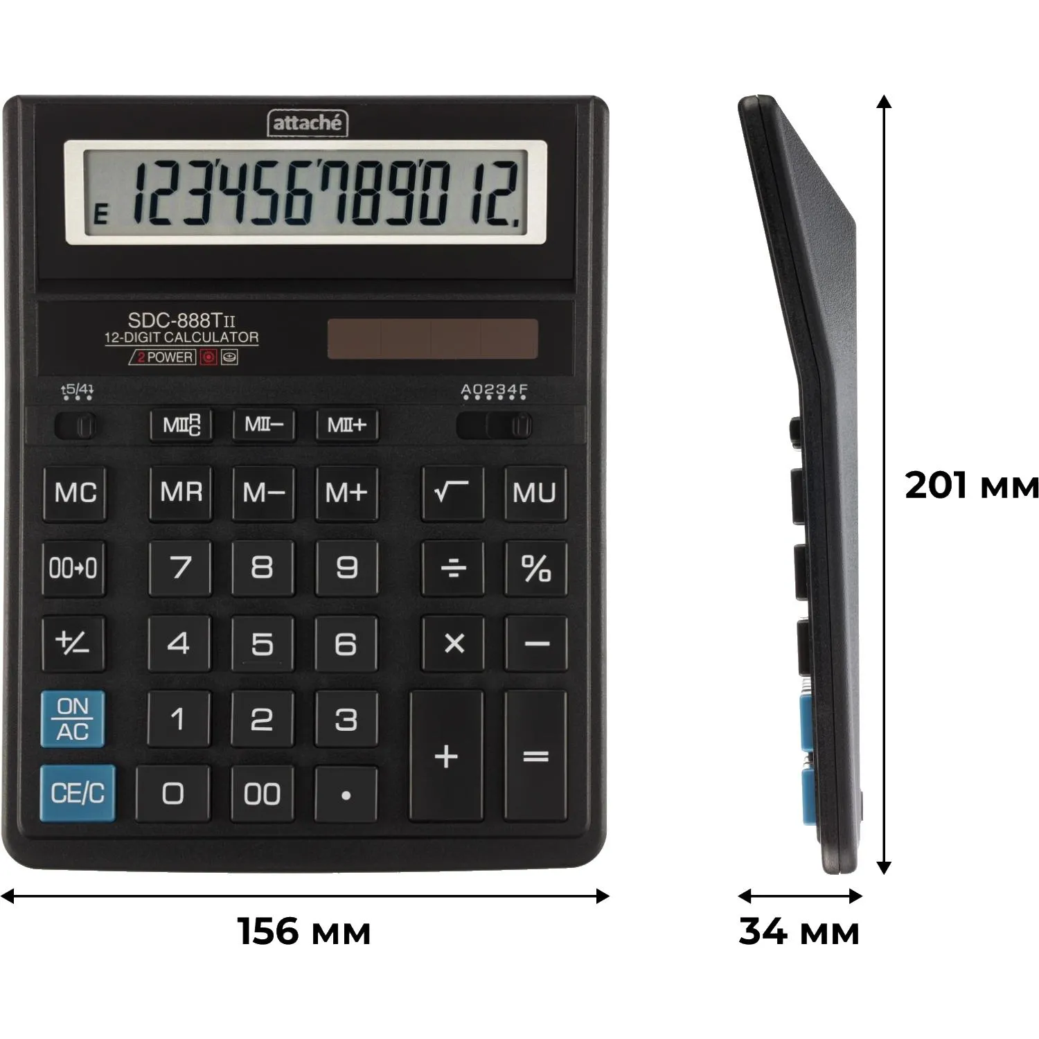Калькулятор настольный Attache SDC-888TII с 12-разрядным дисплеем предназначен для ежедневных расчётов в офисе, бухгалтерии или торговой точке. Наклонный дисплей обеспечивает удобное чтение информации, а крупные кнопки делают работу быстрой и комфортной.