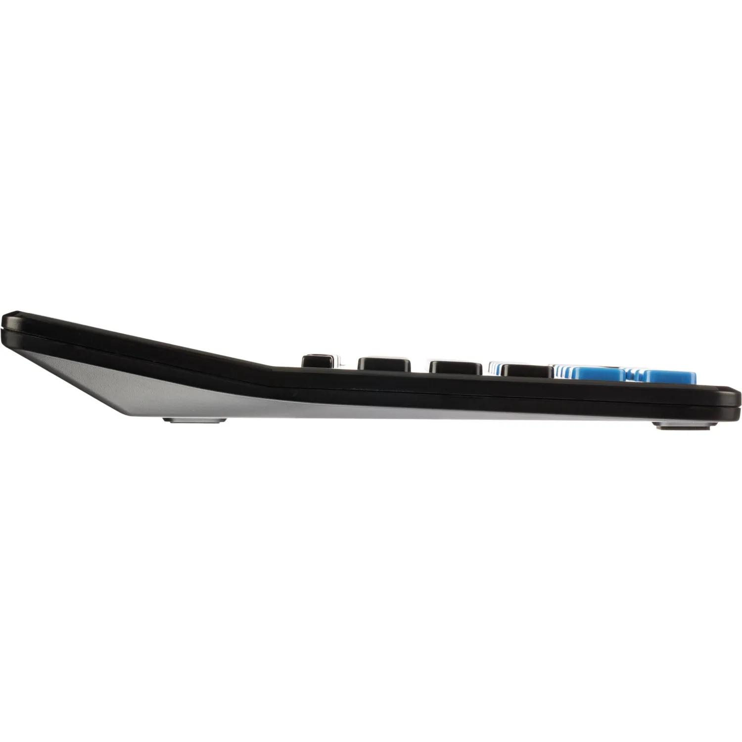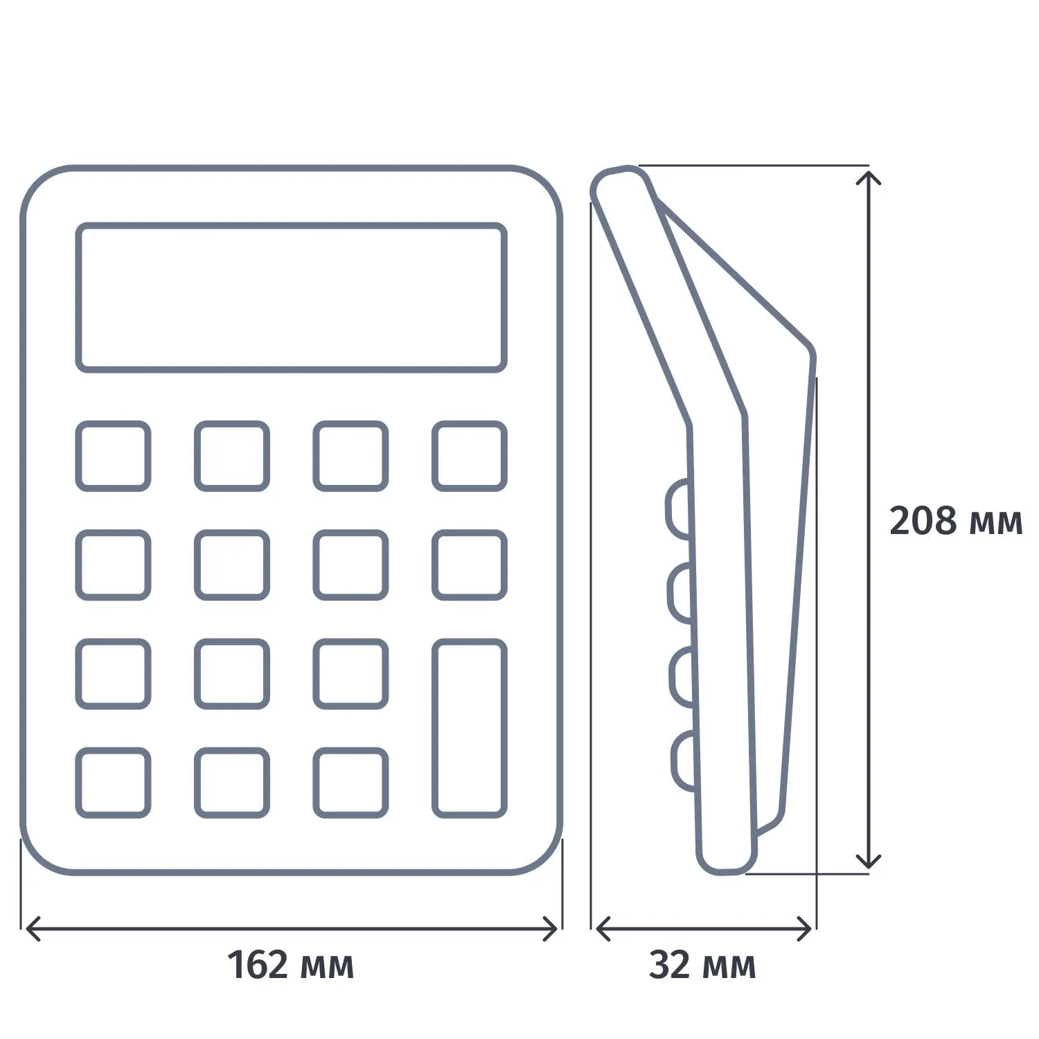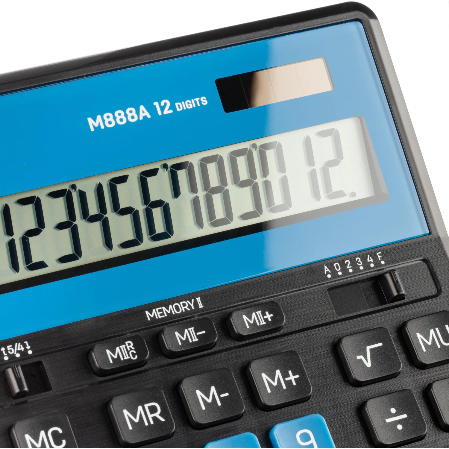 Настольный калькулятор с 12-разрядным дисплеем предназначен для выполнения основных математических операций, таких как сложение, вычитание, умножение и деление, а также для более сложных вычислений, включая извлечение квадратного корня и расчёт процентов. Он оснащён функцией вычисления наценки и имеет независимую память (M+, M-, MRC), что позволяет сохранять данные для дальнейших операций.