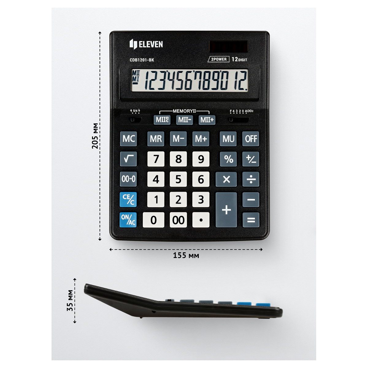 О товаре «Калькулятор настольный Eleven Business Line CDB1201-BK, 12 разрядов, двойное питание, 155*205*35мм, черный»