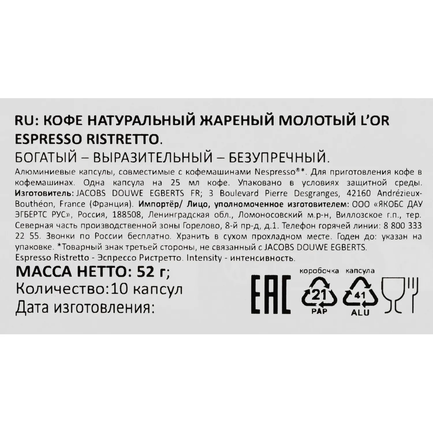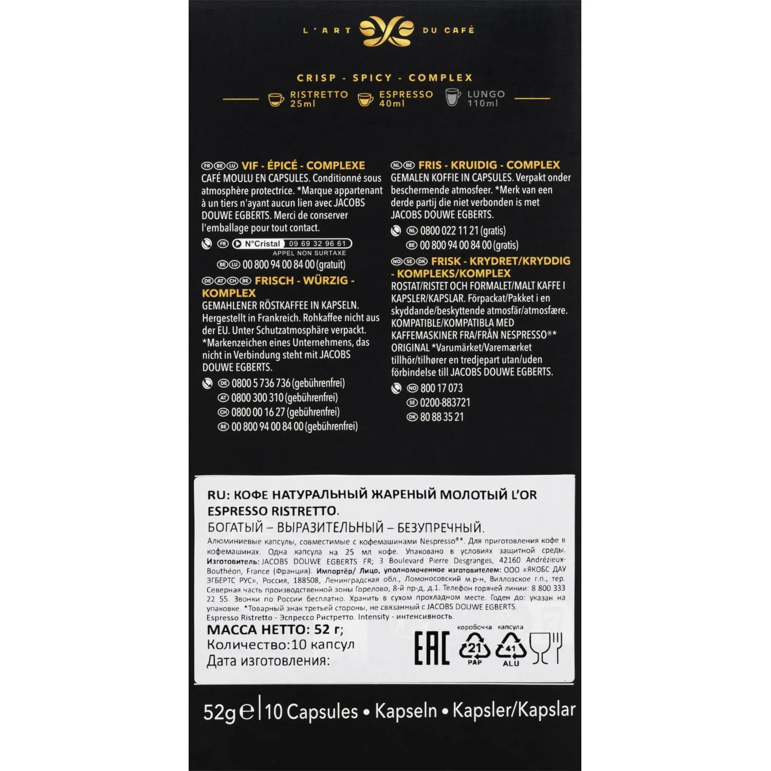 Кофе в капсулах для кофемашин L'or Espresso Ristretto (10 штук в упаковке)