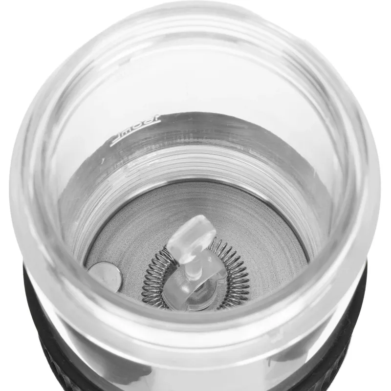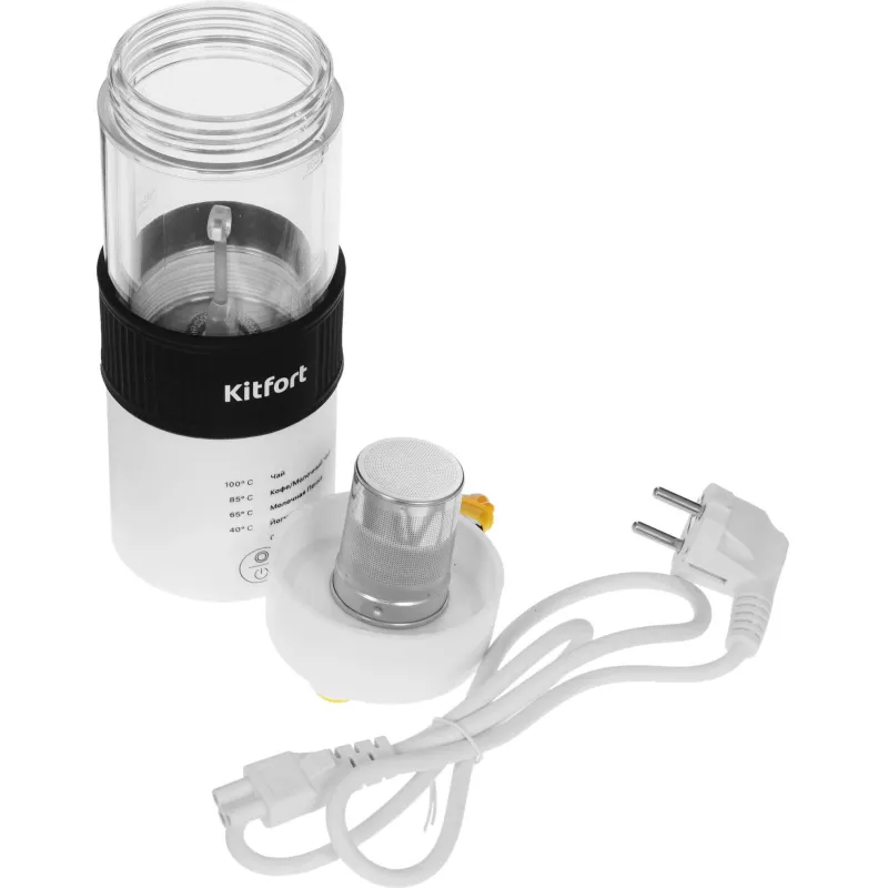 Для смешивания напитков, например какао или горячего молока, используется специальная насадка без пружинки. Продуманная конструкция включает силиконовую вставку на корпусе, защищающую от ожогов, отверстие в крышке для удобного наливания и съёмный кабель питания для компактного хранения.