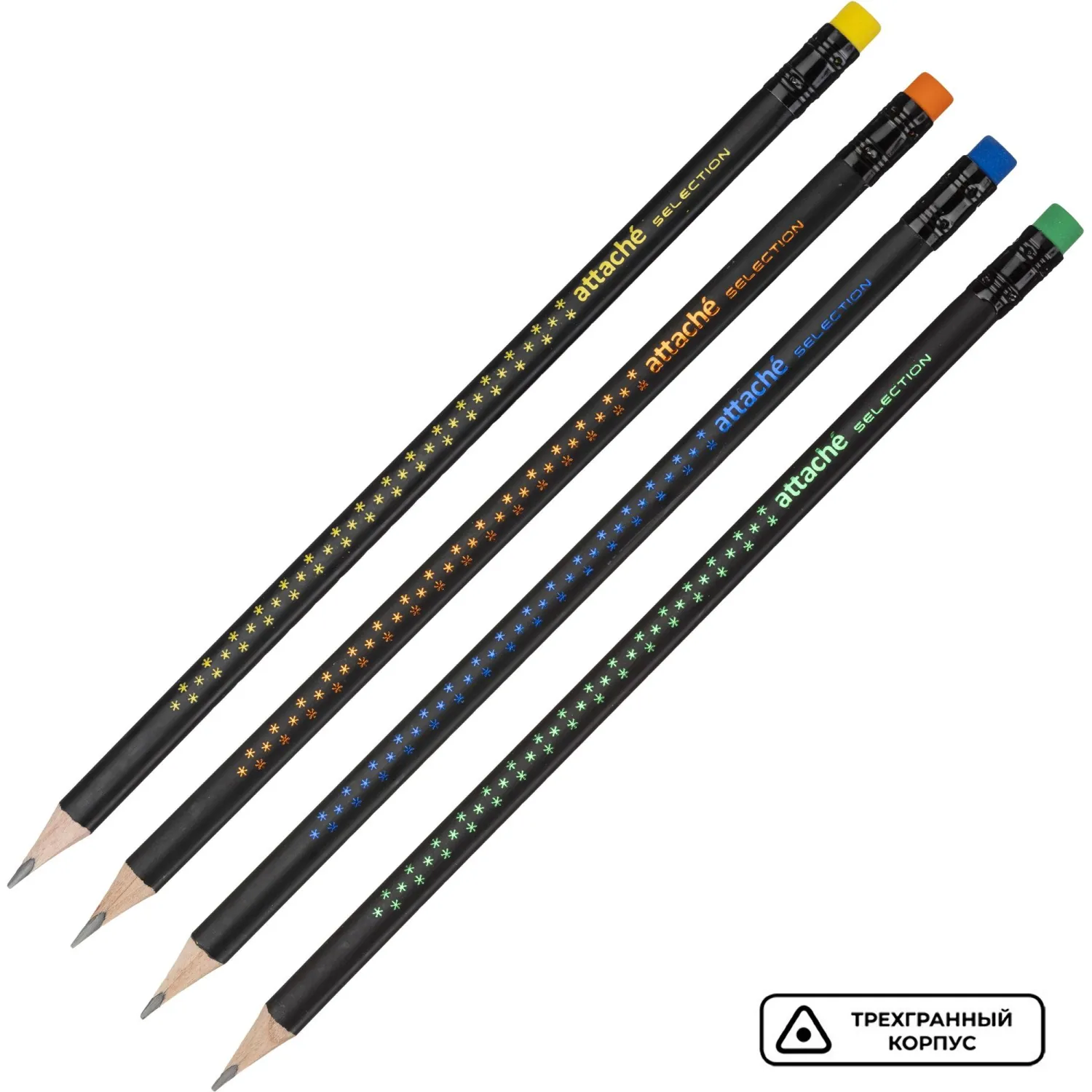 Карандаш чернографитный НВ с ластиком Attache Selection Magie Noire заточенный трехгранный