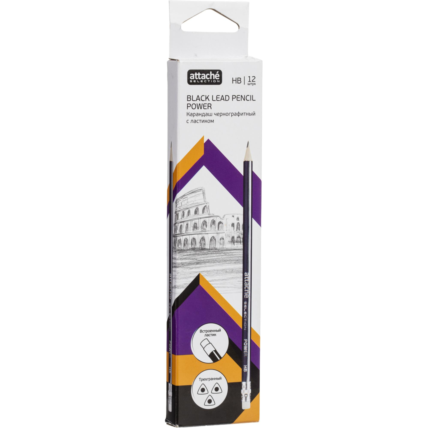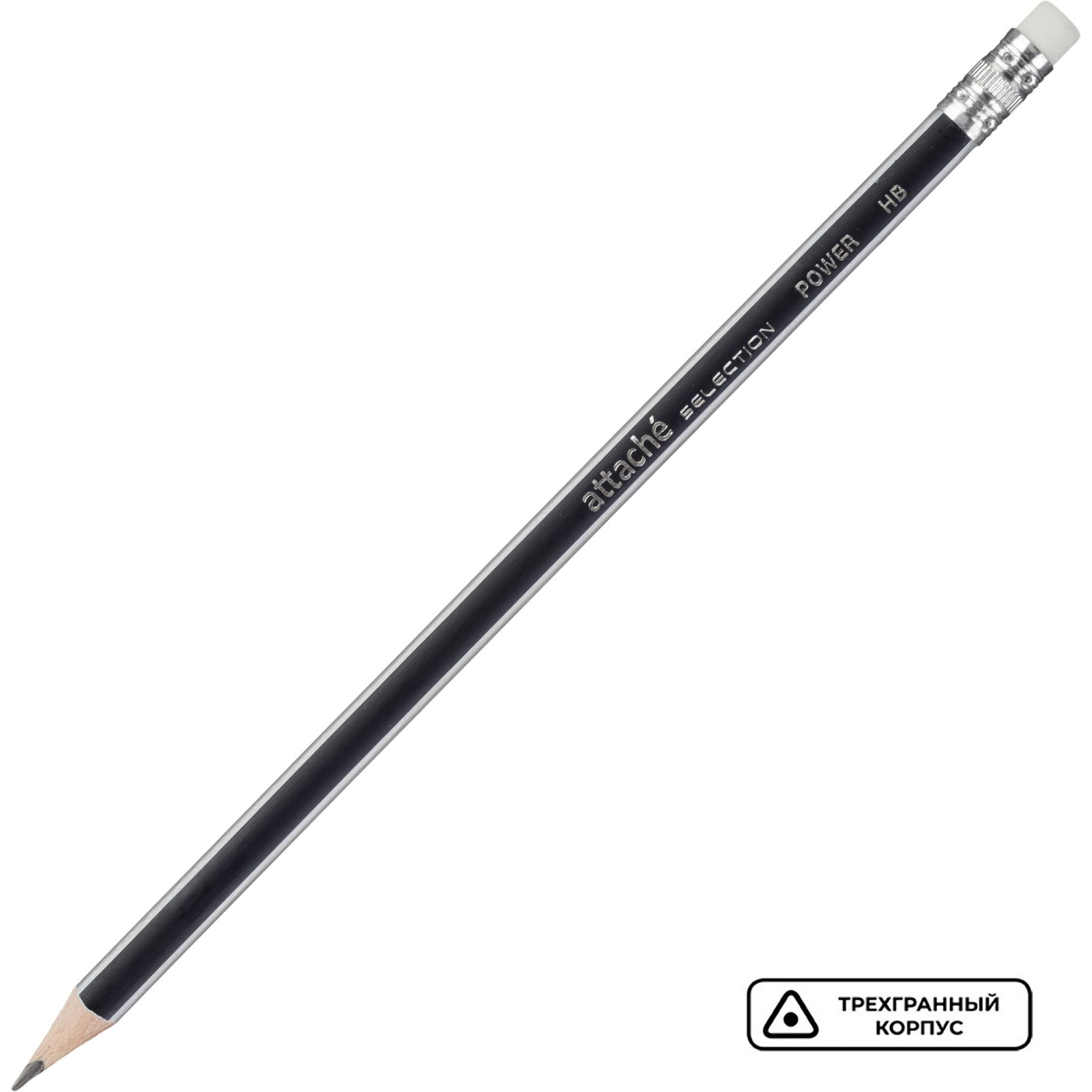 Карандаш чернографитный НВ с ластиком Attache Selection Power заточенный трехгранный