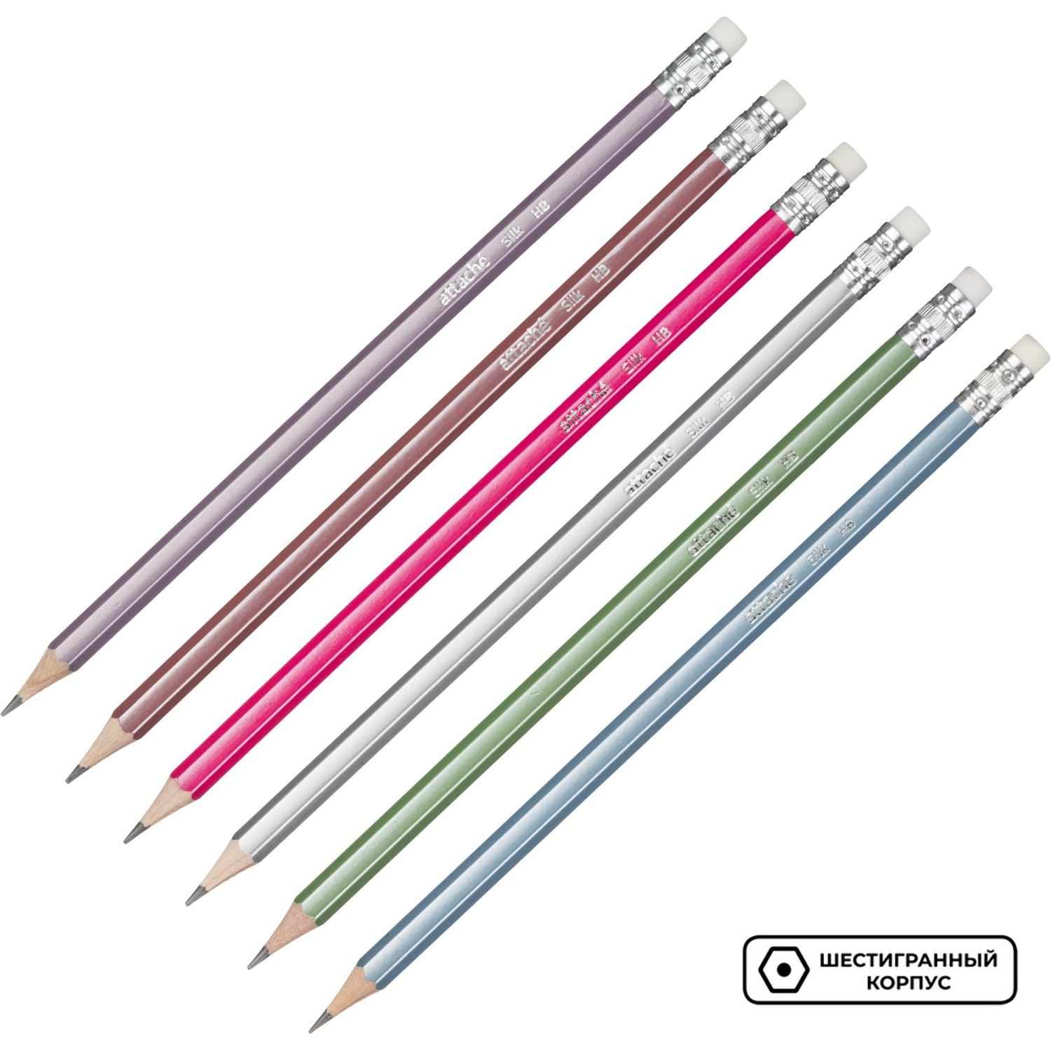 Карандаш чернографитный НВ с ластиком Attache Silk заточенный шестигранный