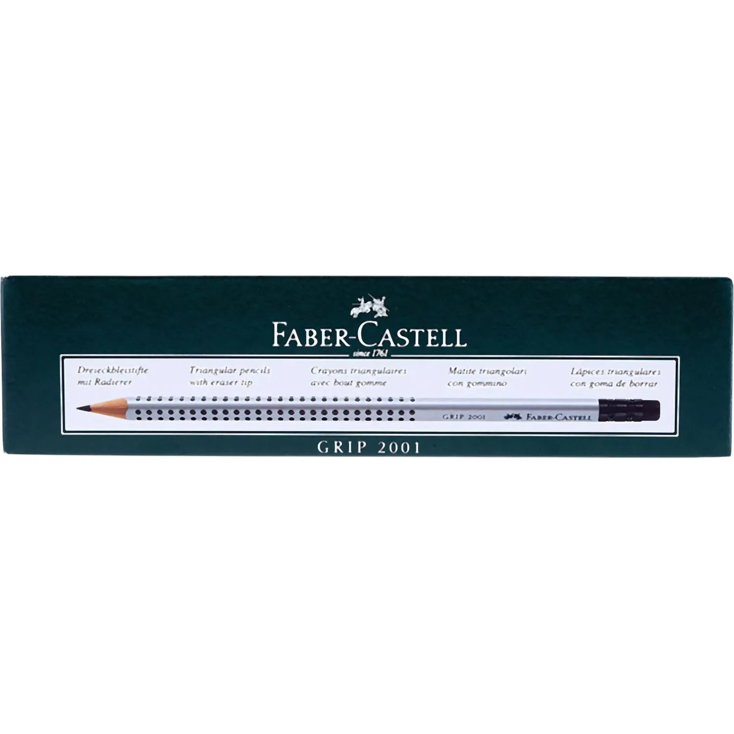 Запатентованное покрытие корпуса делает карандаш с ластиком Grip 2001 от немецкого производителя Faber-Castell уникальным. Его трехгранная форма снижает напряжение руки, а нанесенный на корпус объемный рисунок предотвращает скольжение пальцев. Корпус серого цвета покрыт экологически чистым лаком на водной основе. Благодаря специальной технологии проклеивания грифеля (SV), грифель не ломается при падении и затачивании. Ластик не содержит ПВХ. Твердость: HB.