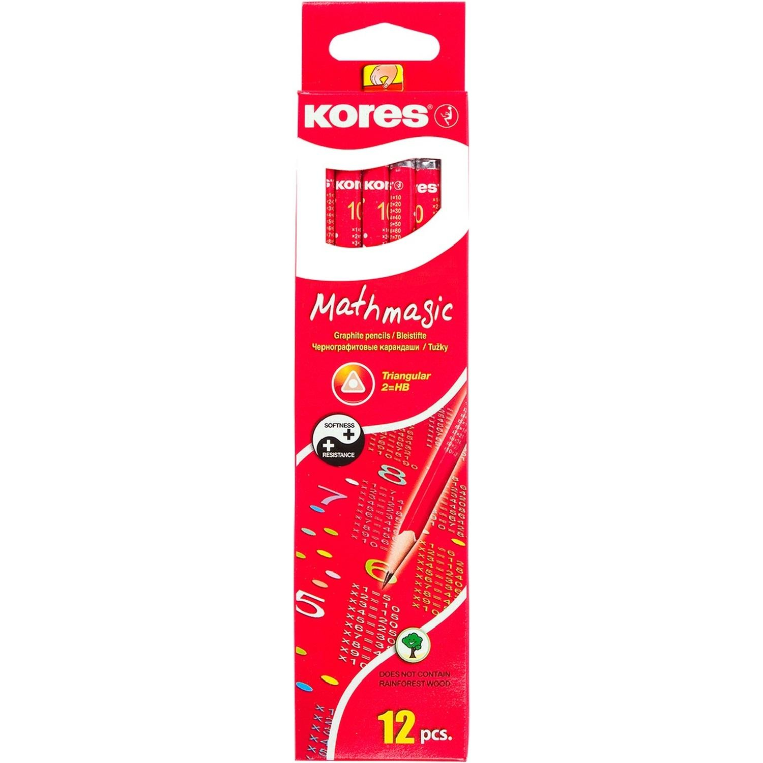 Карандаш чернографитный HB с ластиком и таблицей умножения Kores заточенный трехгранный