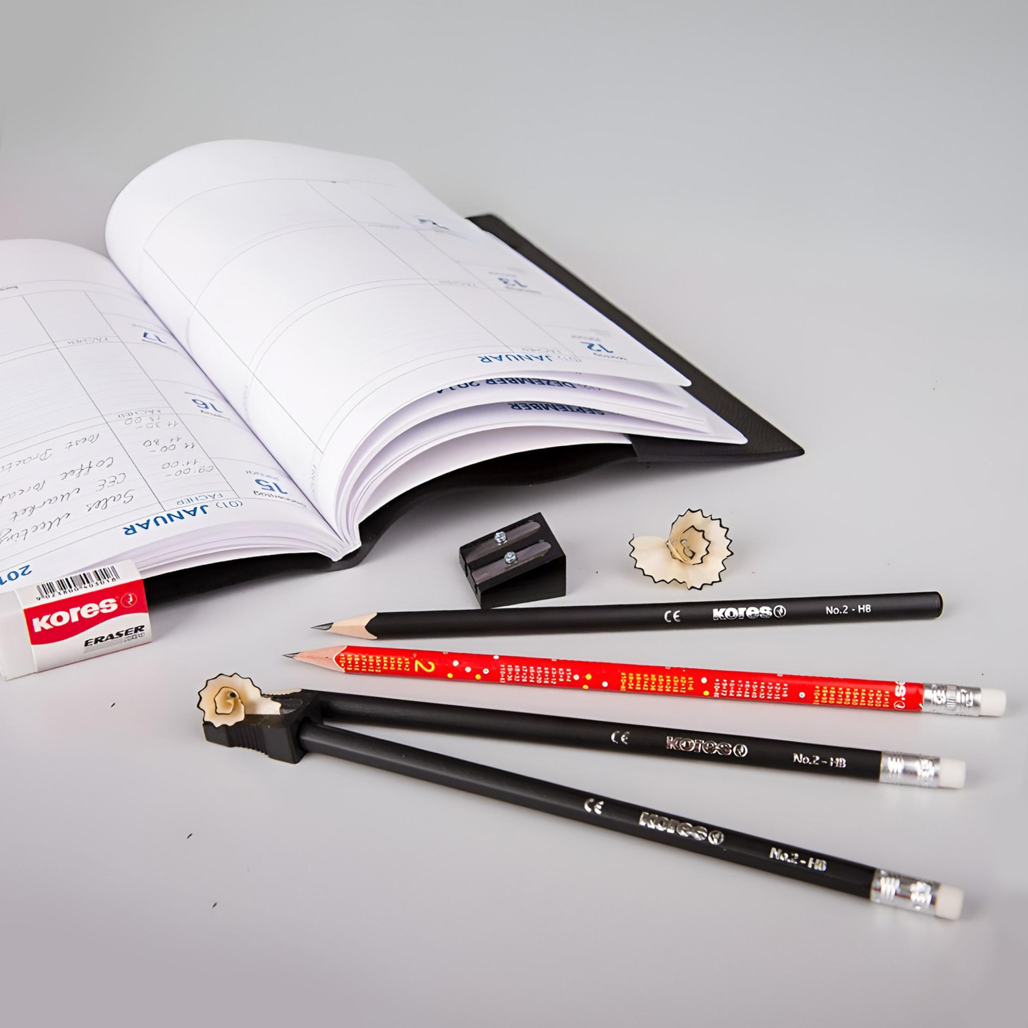 Карандаш чернографитный Kores в красном трехгранном деревянном корпусе с таблицей умножения. Простой карандаш с ластиком заточен. Твердость грифеля — HB. Высококачественный и прочный, грифель не сломается даже при падении и ударе. Длина карандаша — 185 мм.