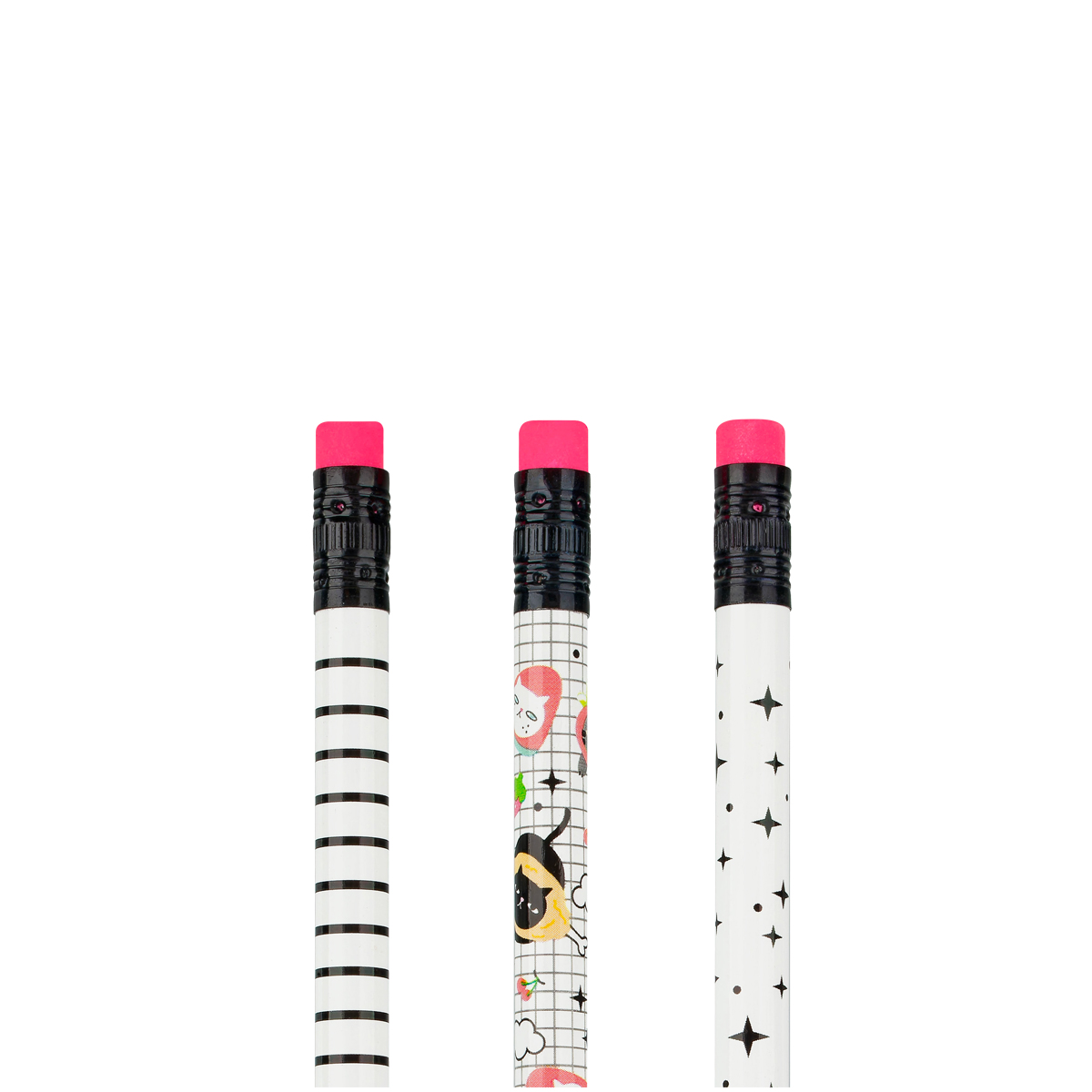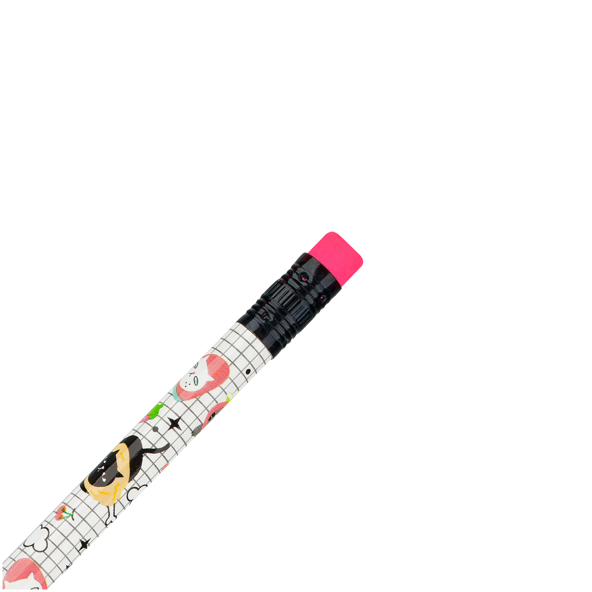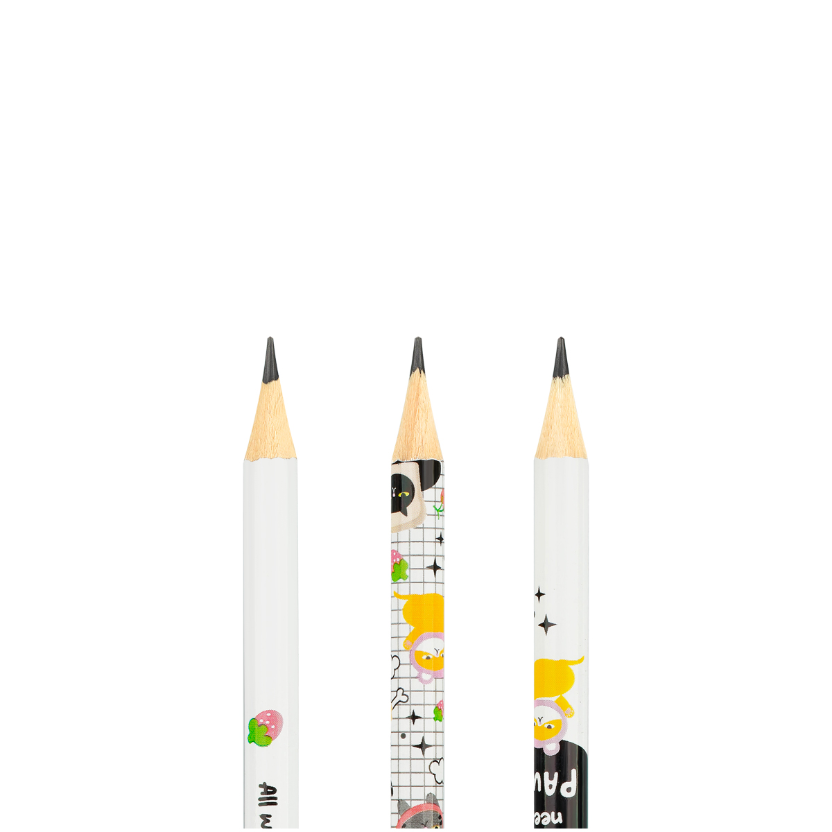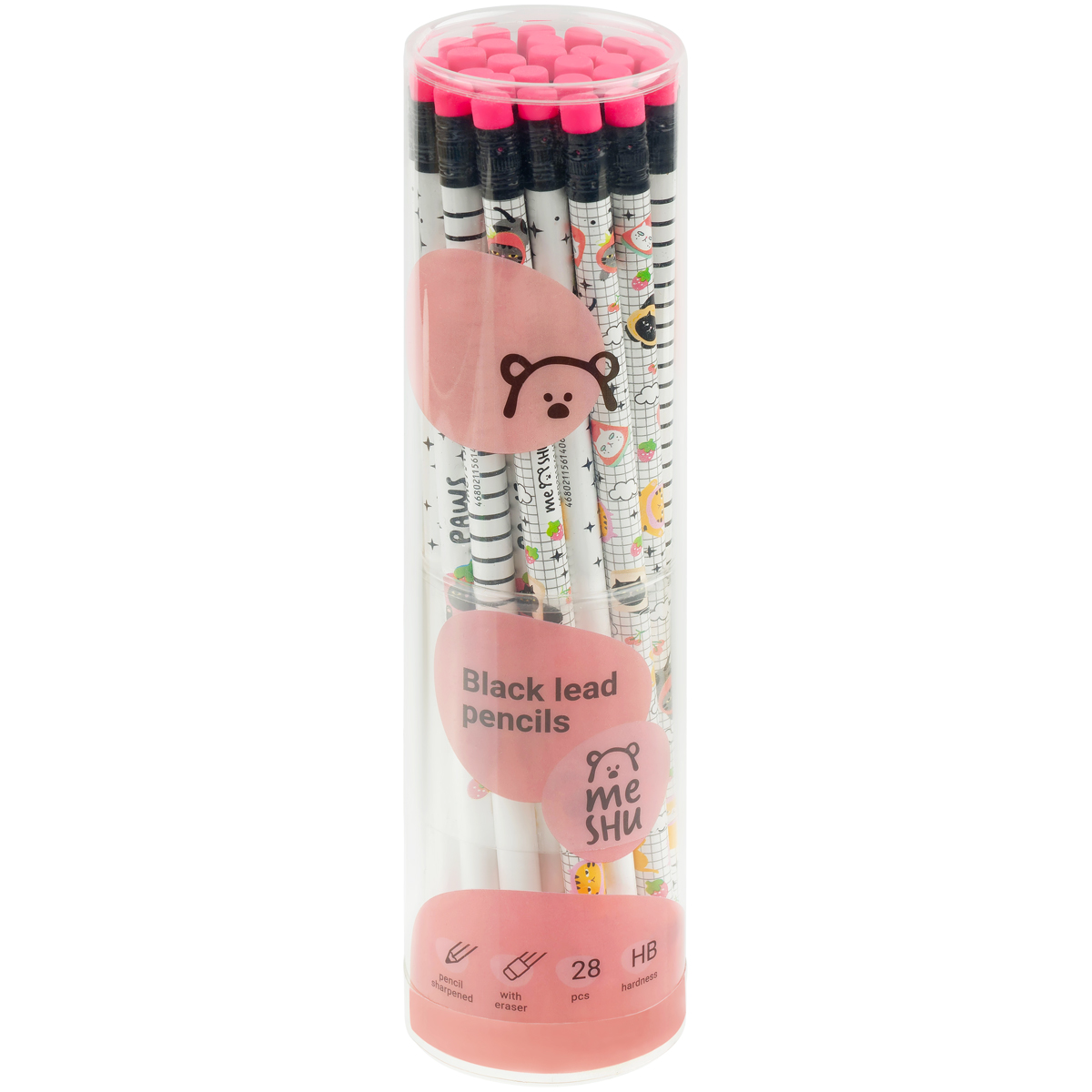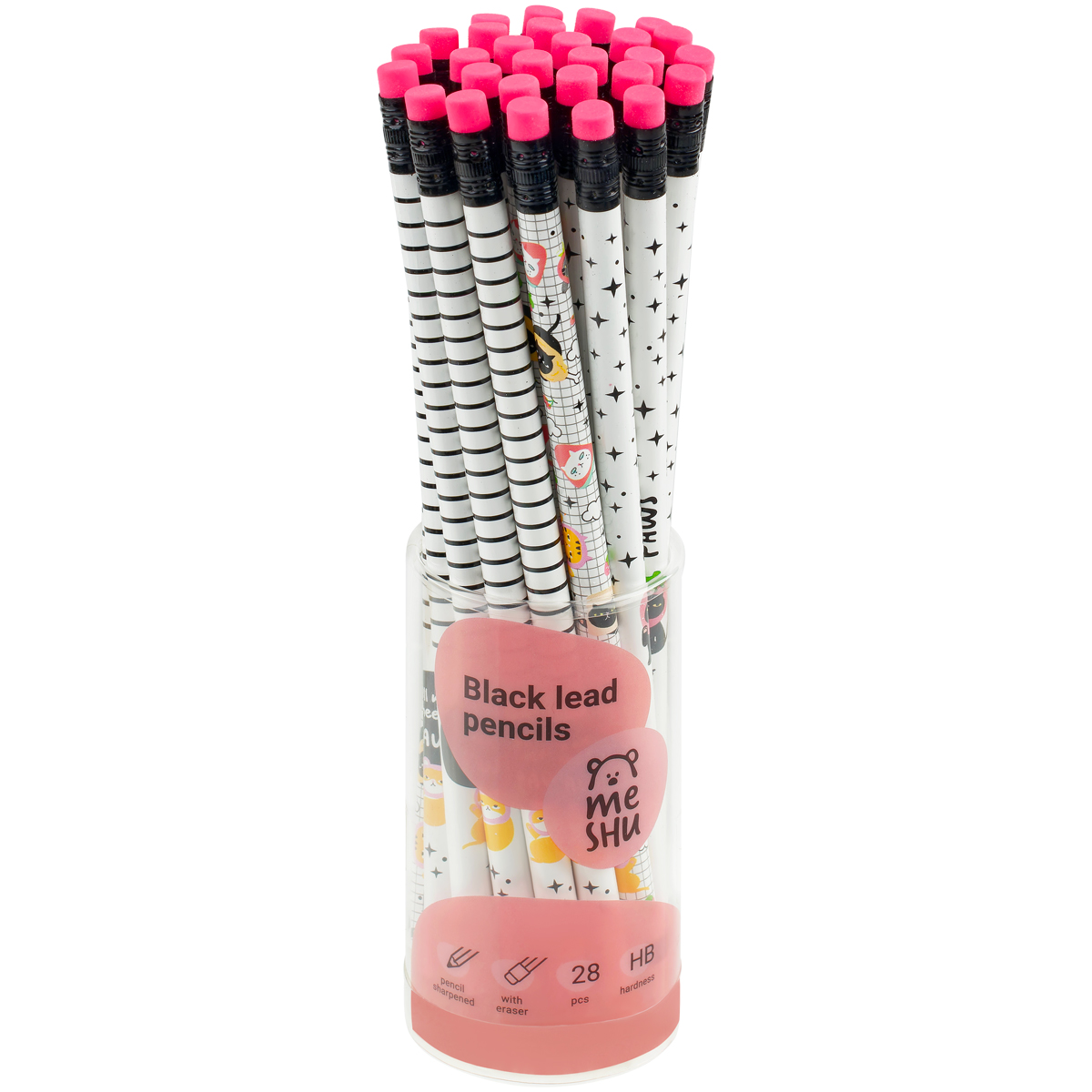 Чернографитные карандаши MESHU "Cat paws" с печатью на корпусе и цветным ластиком — аксессуары, которые не дадут заскучать на учёбе или работе. Они представлены в круглом корпусе с тремя разными дизайнами. Твёрдость грифеля — HB. Длина карандаша — 190 мм. Диаметр — 2,2 мм.