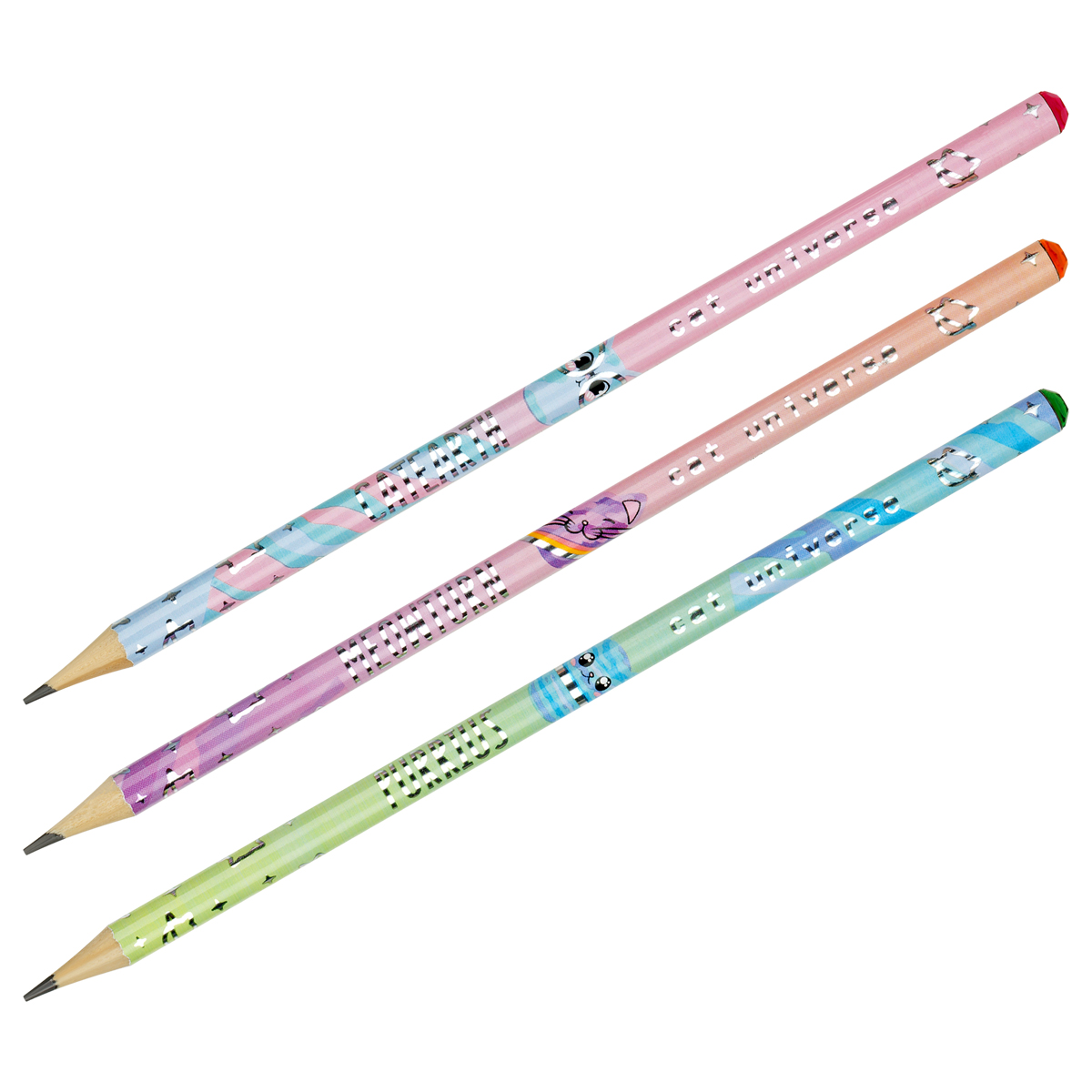 Карандаш ч/г MESHU "Meowspace", HB, заточен., c фольгированием, стразы на топе, без ластика, ассорти, туба
