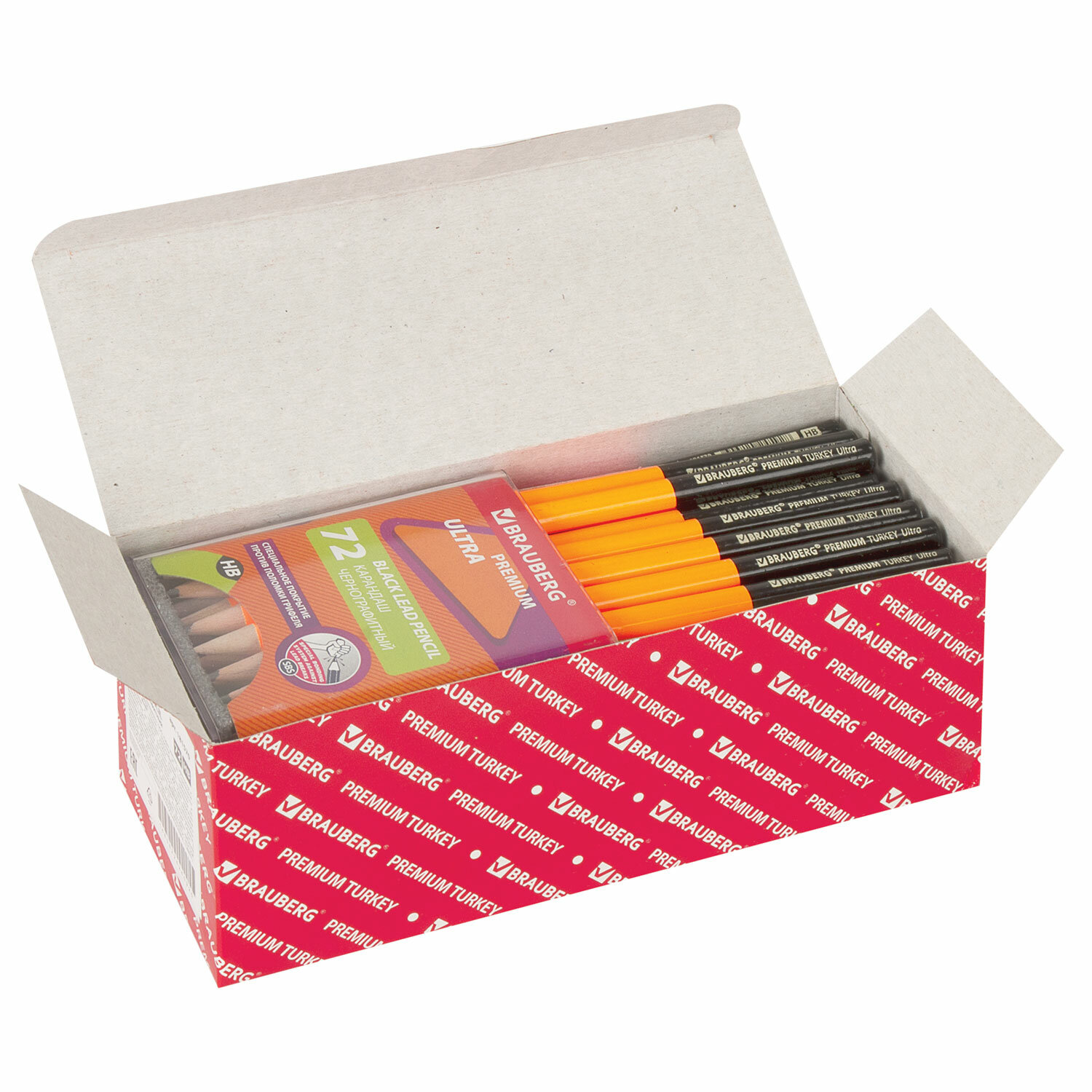 Карандаш чернографитный BRAUBERG "PREMIUM TURKEY", 1 шт., "Ultra", НВ, ассорти, дисплей,181570