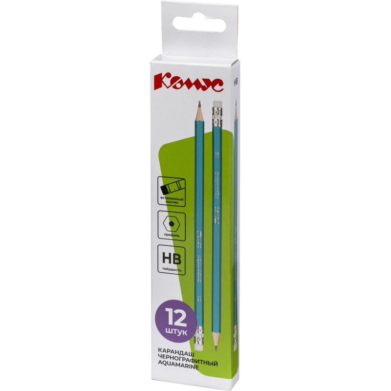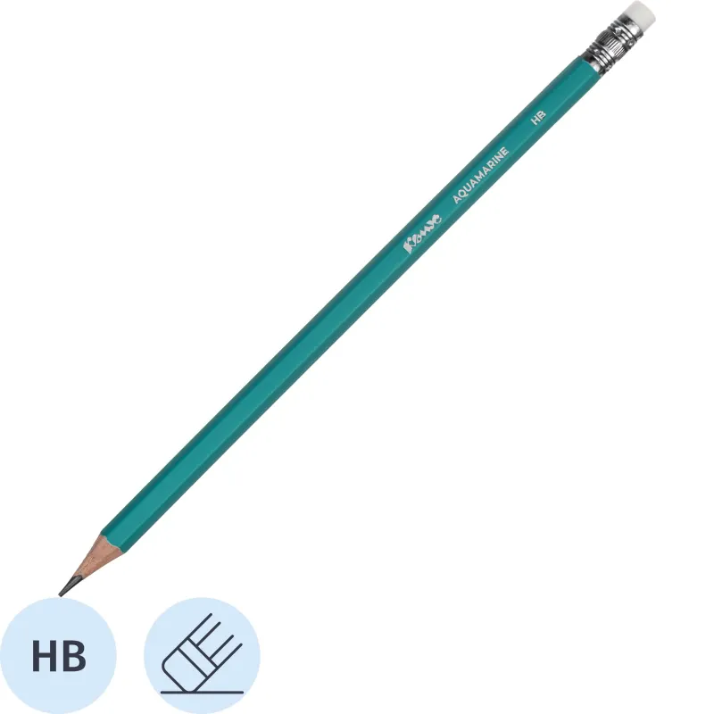 О товаре «Карандаш чернографитный деревянный HB с ластиком Комус Aquamarine заточенный зеленый»
