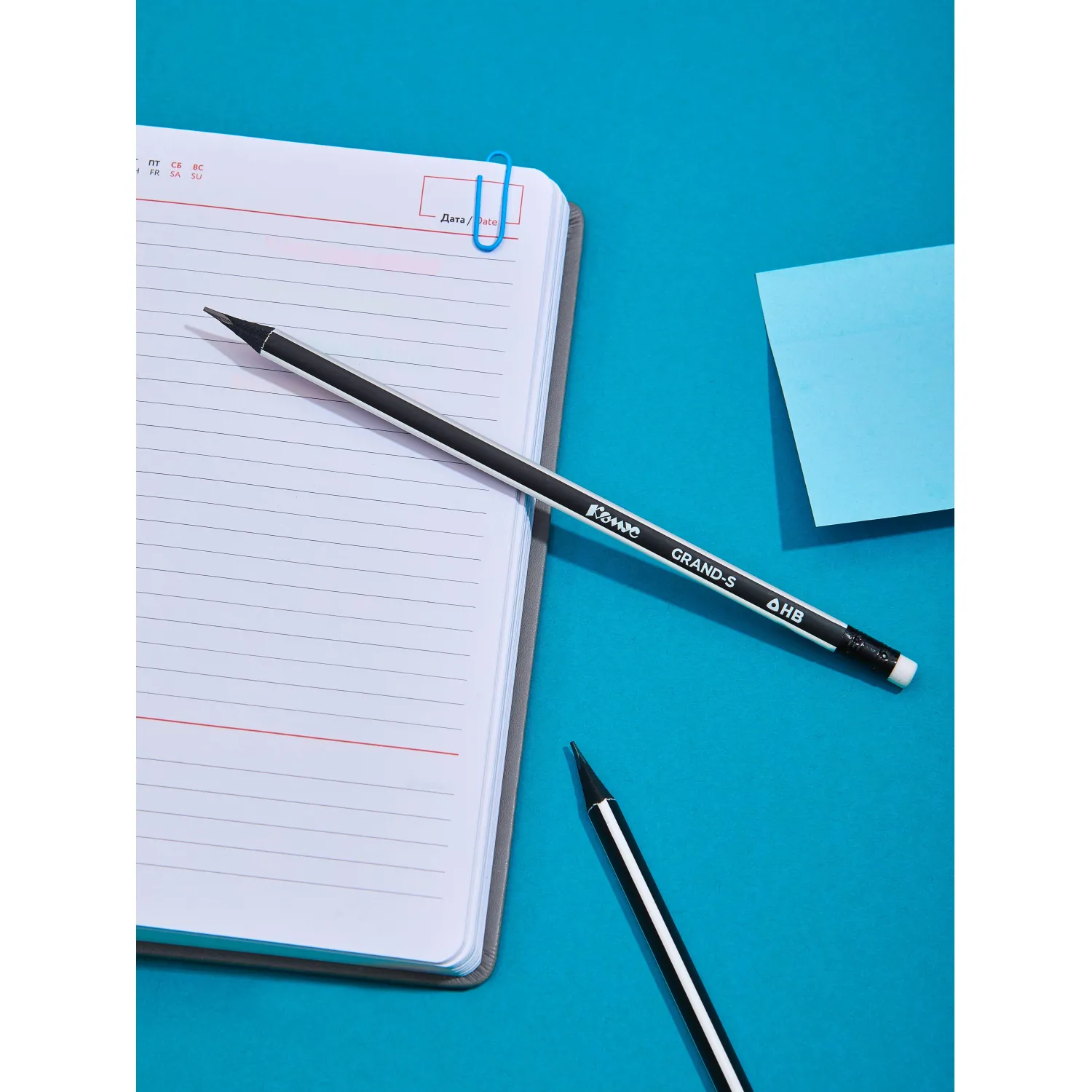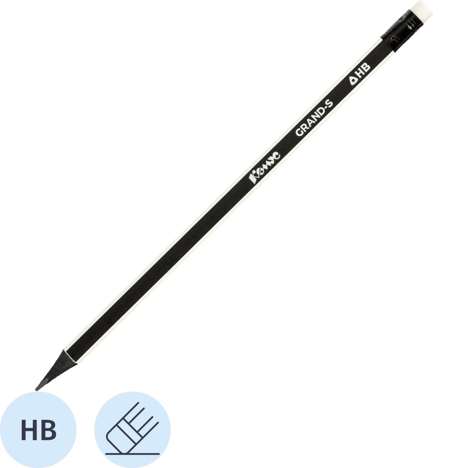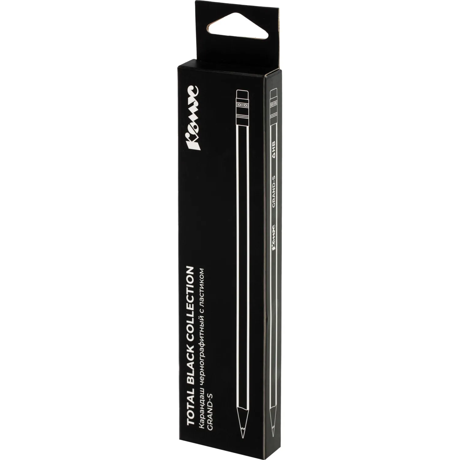 Карандаш чернографитный дерево HB с ластиком Комус Grand-S заточенный чёрный