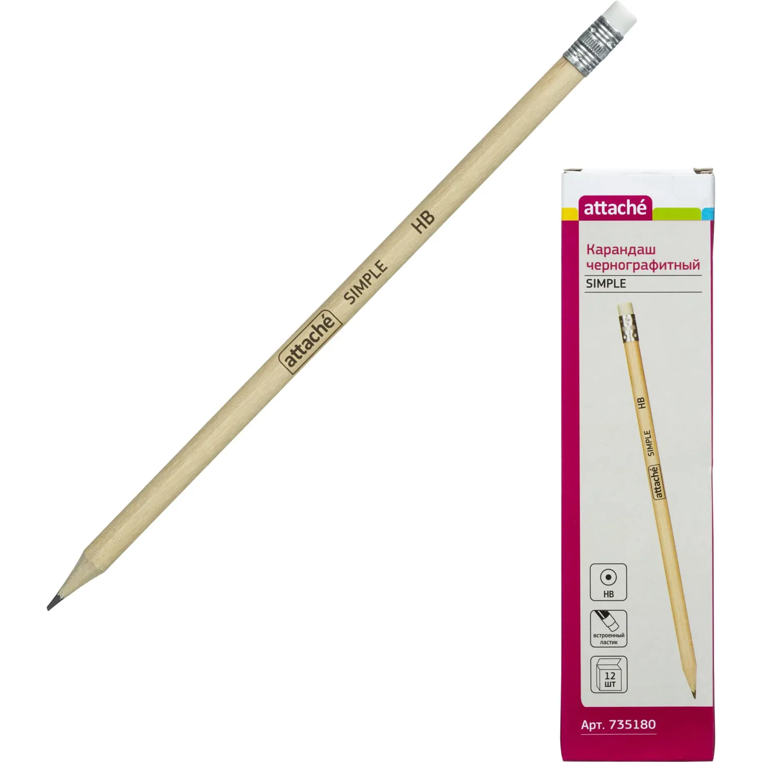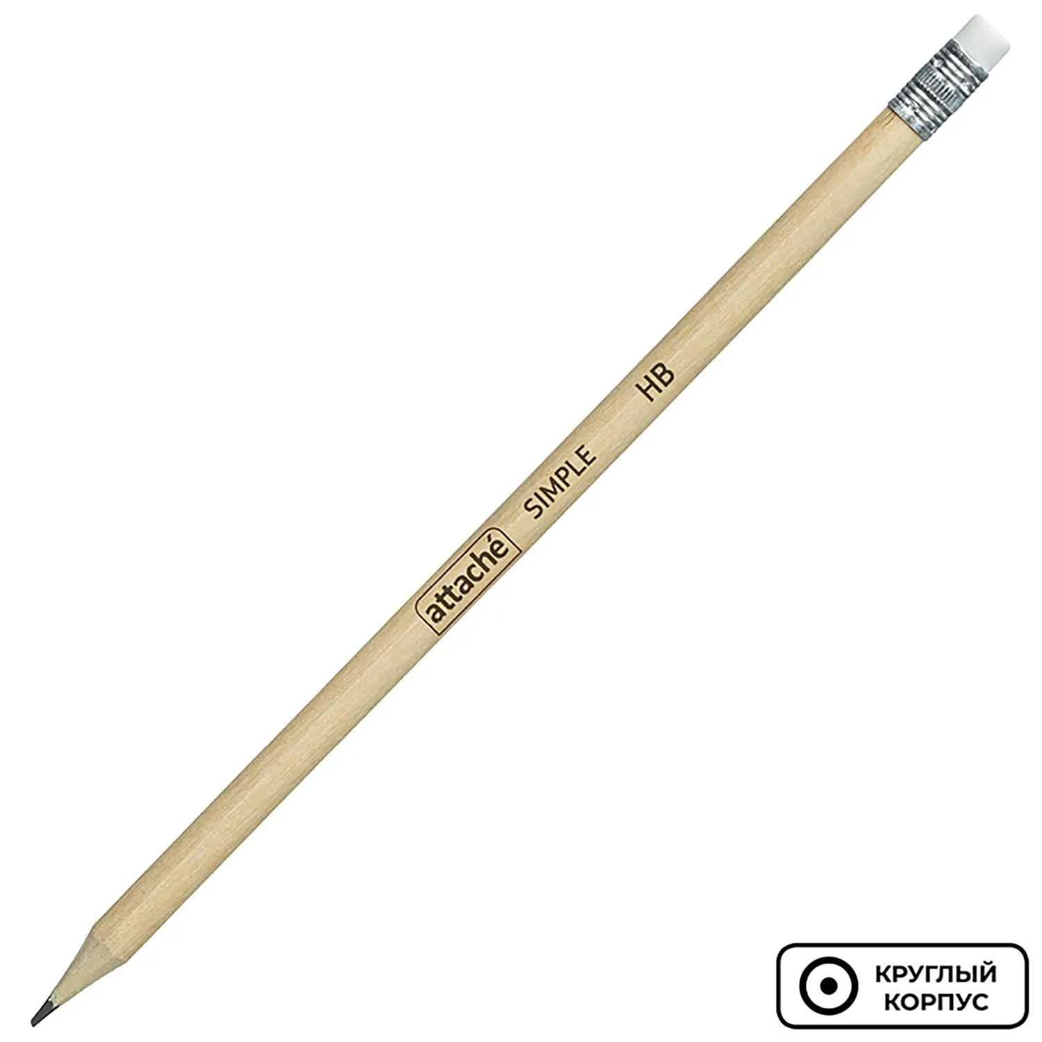О товаре «Карандаш чернографитный HB с ластиком Attache заточенный круглый из натурального дерева»