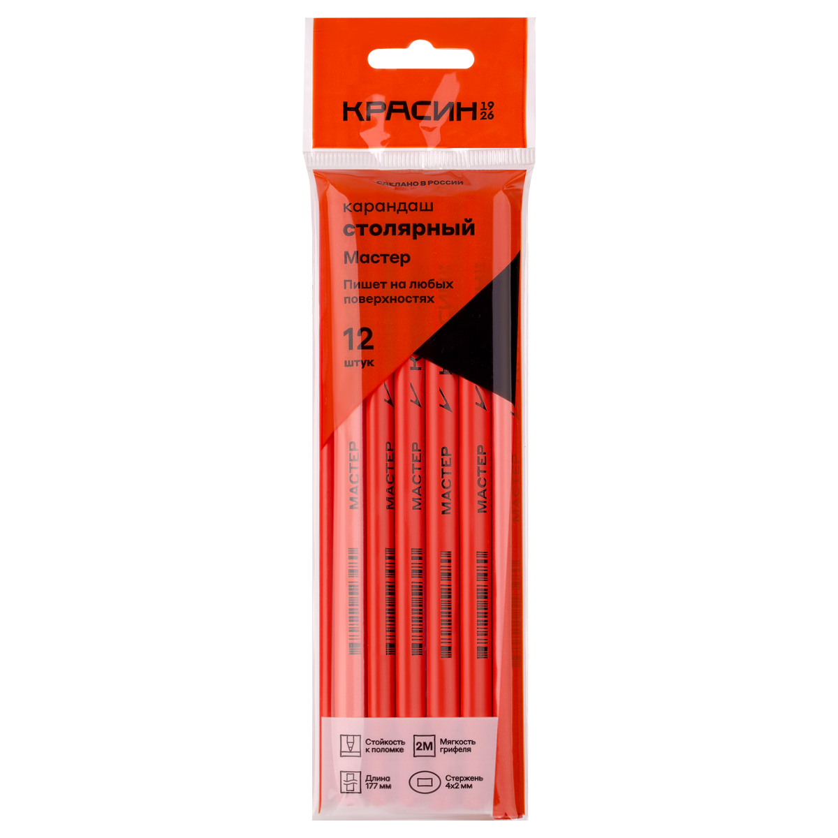 О товаре «Карандаш столярный Красин "Мастер", овального сечения 2М(2B), заточен., пакет, европодвес»