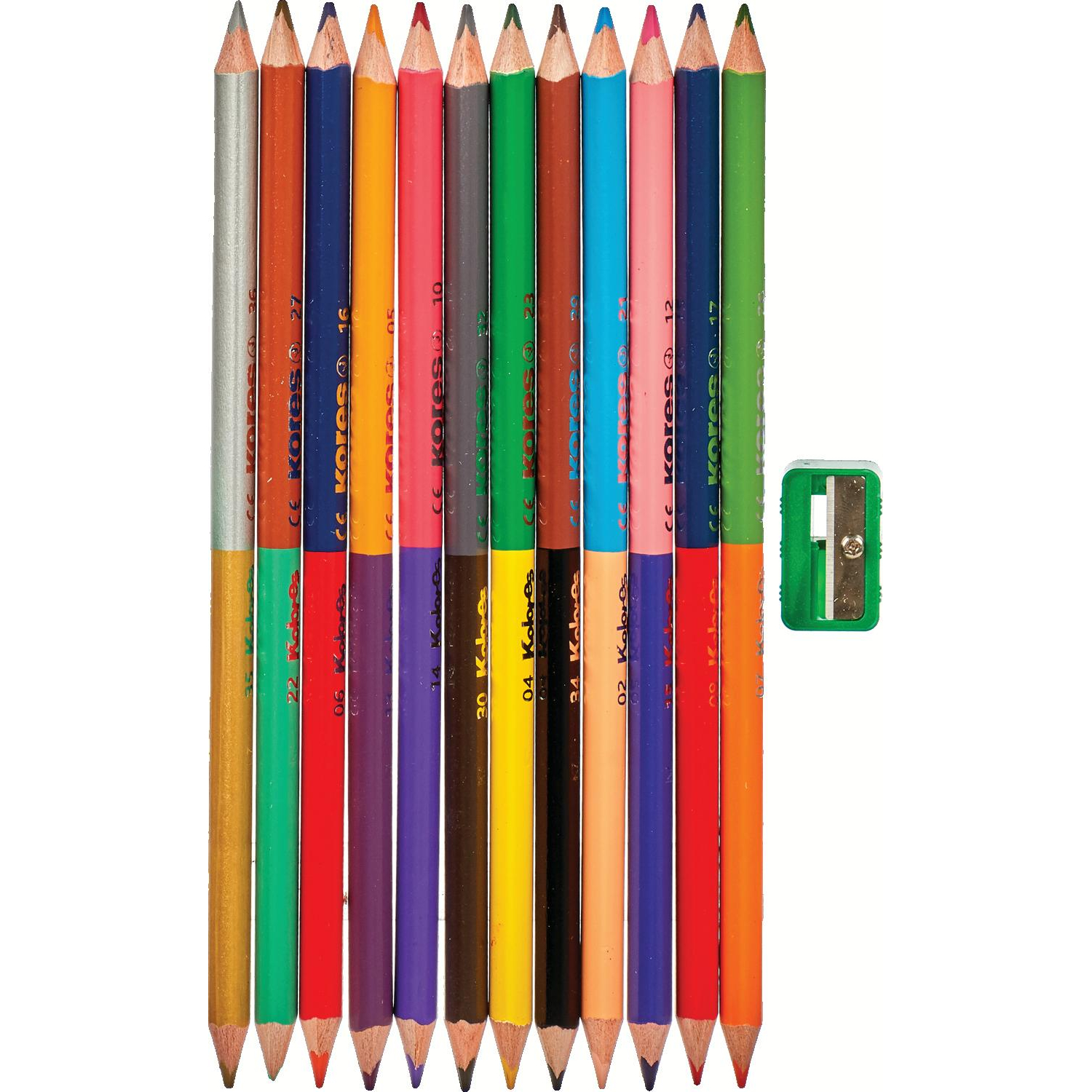 Карандаши цветные Kores Duo 12 карандашей 24 цвета трёхгранные (двусторонние)