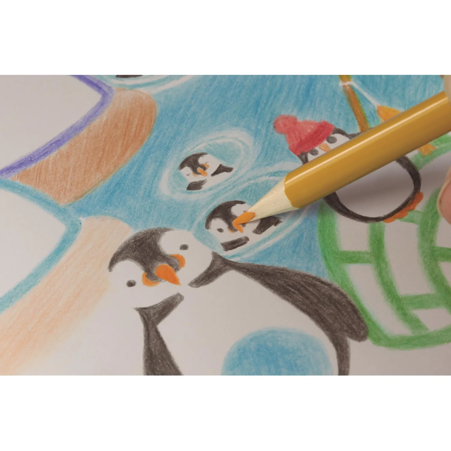 Карандаши цветные предназначены для рисования на бумаге. Подойдут для использования в школе и дома. Рекомендованы для детей от трёх лет. Карандаши изготовлены из высококачественной древесины. Форма корпуса трёхгранная. Диаметр грифеля: 2.9 мм. Длина корпуса: 174 мм. Диаметр корпуса 6.4 мм. Карандаши ударопрочные и легко затачиваются без заусенцев. Трёхгранная форма помогает малышу правильно располагать пальцы при рисовании и письме. Грифель обеспечивает равномерное нанесение тона и устойчив к поломке благодаря системе защиты грифеля. Эта система приклеивает грифель по всей длине карандаша к древесине.