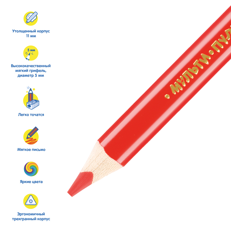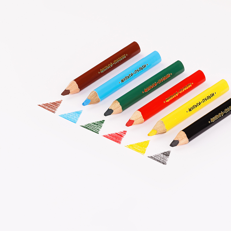 Карандаши цветные с заточенным грифелем, с эргономичной трехгранной формой корпуса. Короткие. Яркие насыщенные цвета. Мягкое письмо. Карандаши легко затачиваются. Утолщенный корпус карандаша хорошо подходит для детей, чья моторика еще недостаточно развита. Для детей старше 3-х лет.