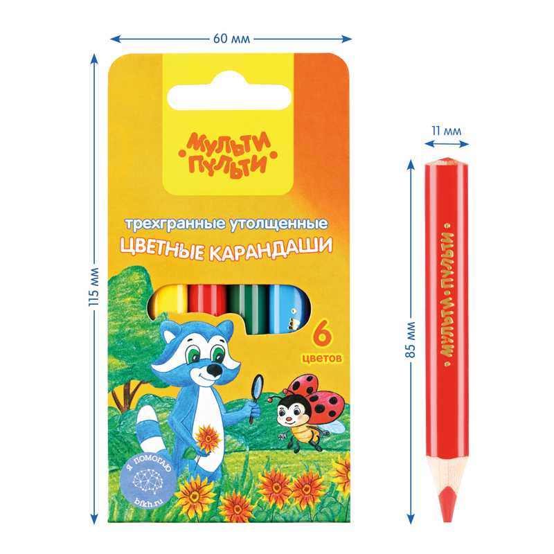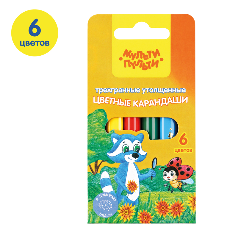 О товаре «Карандаши цветные Мульти-Пульти "Енот на лугу", 06цв., утолщ., трехгран., укорочен., заточен., картон»