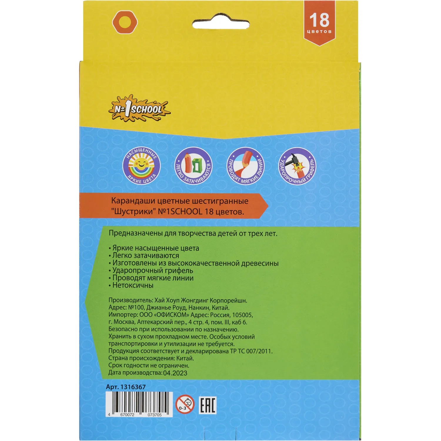 О товаре «Карандаши цветные №1 School Шустрики 18 карандашей 18 цветов шестигранные»