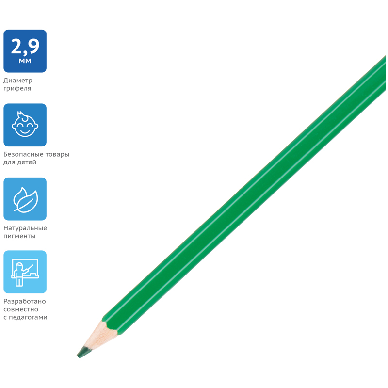 Карандаши для детей от 7 до 12 лет в уникальной упаковке-конверте с креативным дизайном. Проклеенный ударопрочный грифель не крошится во время заточки и не сломается даже после падения. Яркие, насыщенные цвета, равномерное закрашивание поверхности.
